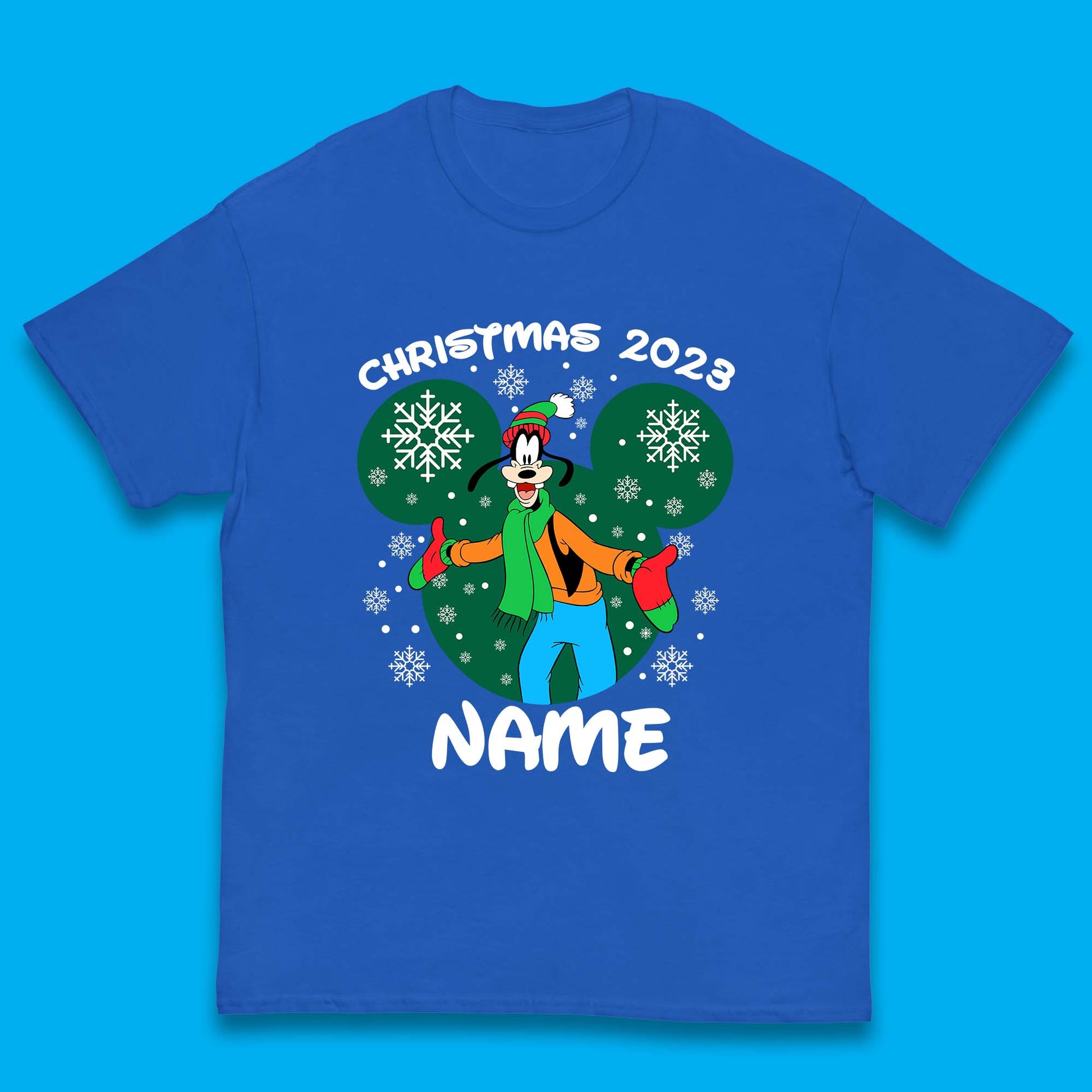 Personalised Christmas 2023 Your Name Santa Goofy And Pluto Xmas Disney Mickey And Friends Kids T Shirt