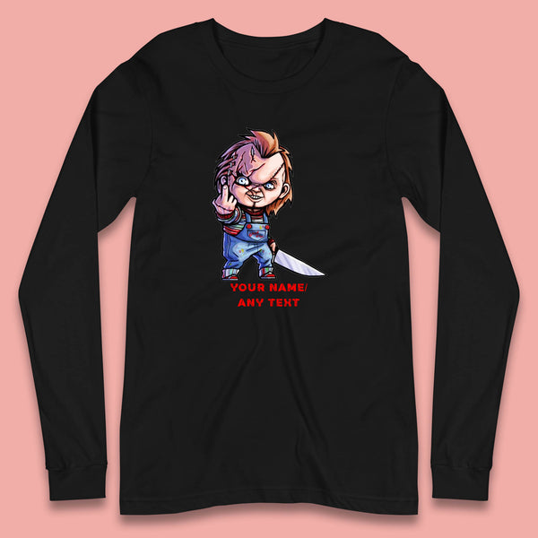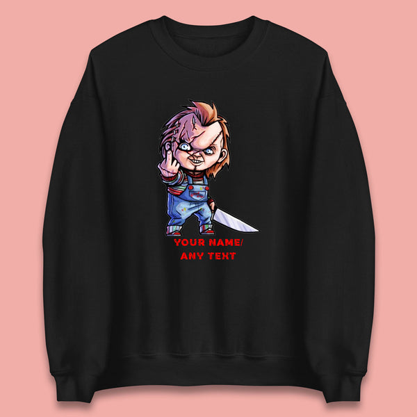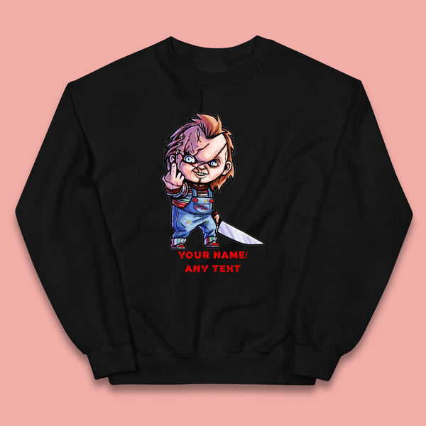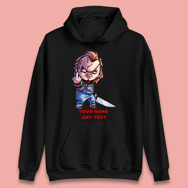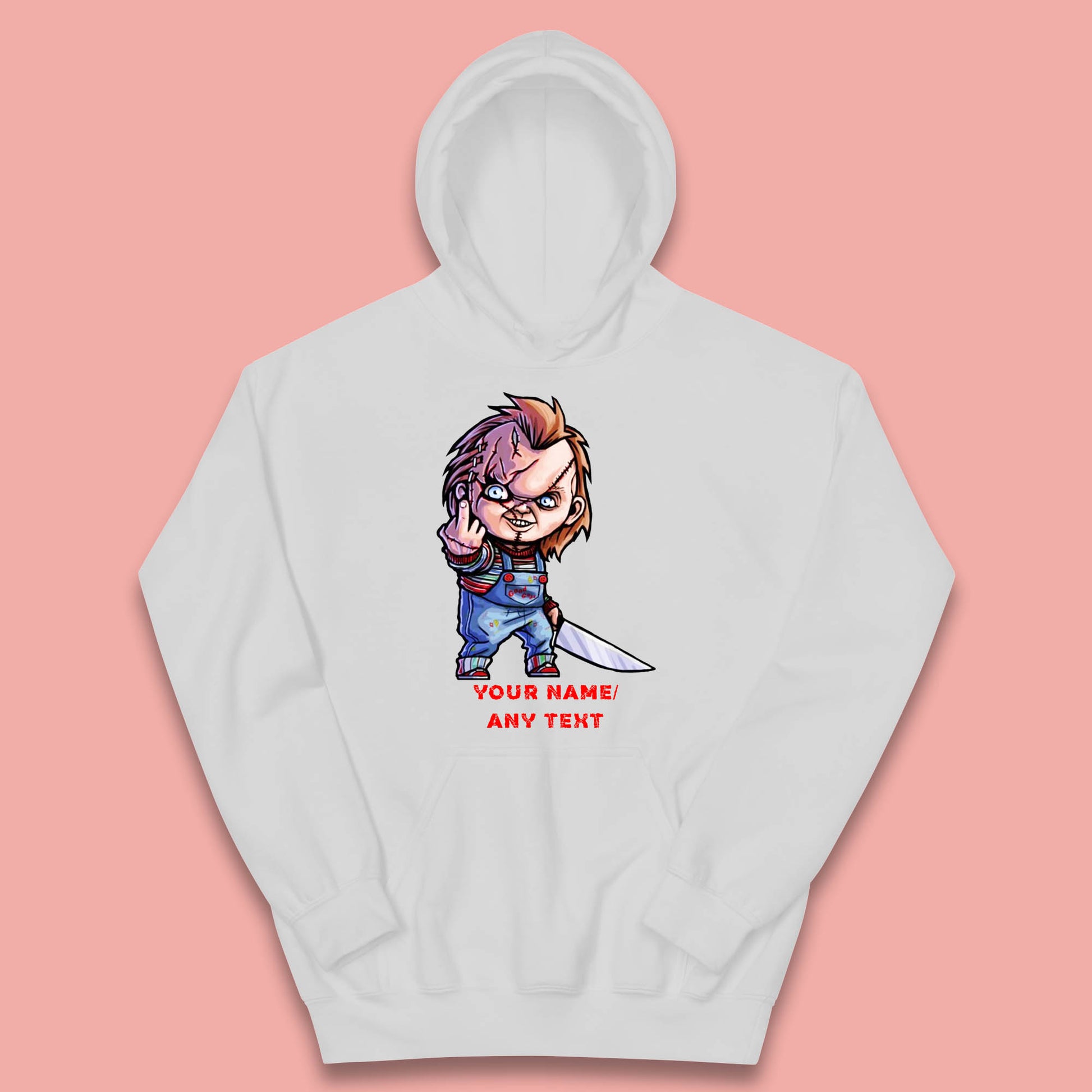 Personalised Chucky With Knife Your Name Or Text Halloween Horror Movie Character Kids Hoodie