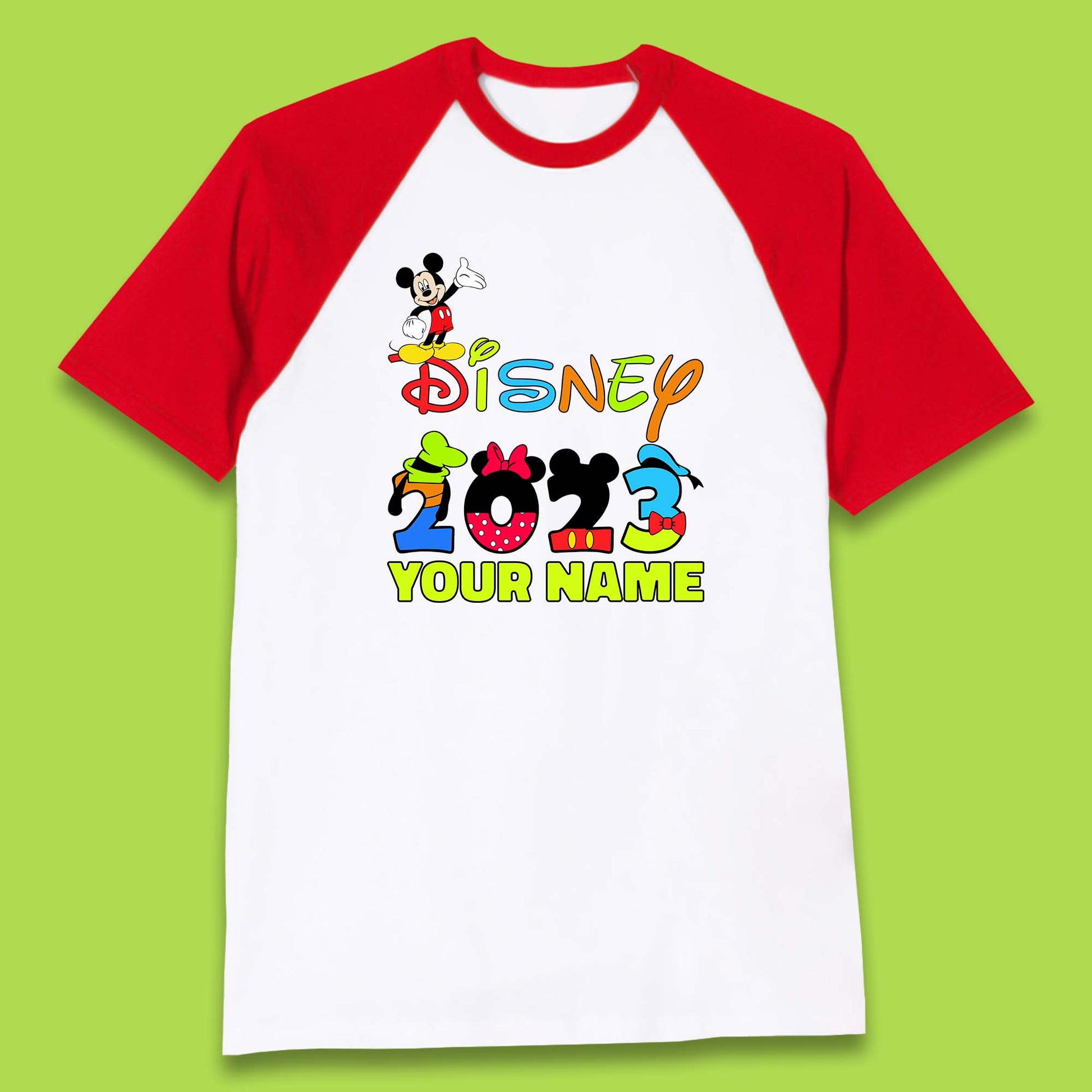 Personalised Disney 2023 Disney Club Your Name Mickey Mouse Minnie Mouse Donald Duck Pluto Goofy Cartoon Characters Disney Vacation Baseball T Shirt