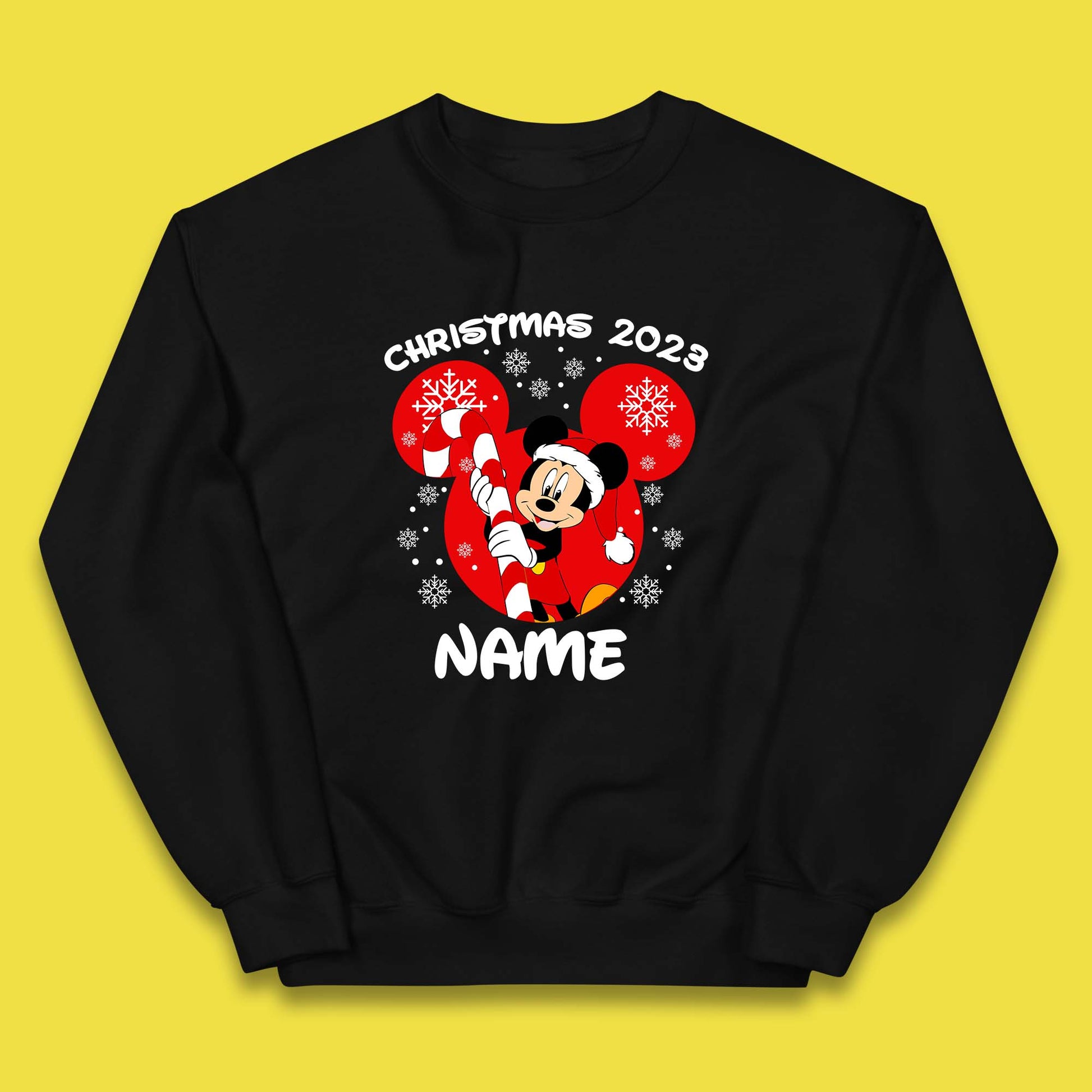 Personalised Disney Christmas 2023 Your Name Santa Mickey Mouse And Minnie Mouse Xmas Disneyland Trip Kids Jumper