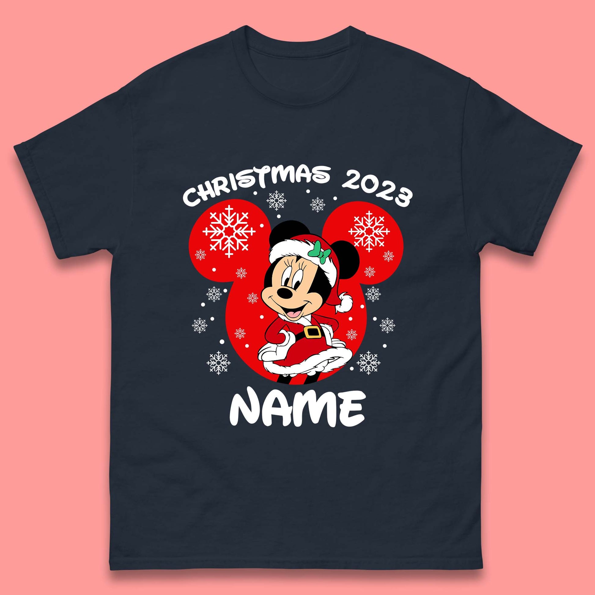 Personalised Disney Christmas 2023 Your Name Santa Mickey Mouse And Minnie Mouse Xmas Disneyland Trip Mens Tee Top