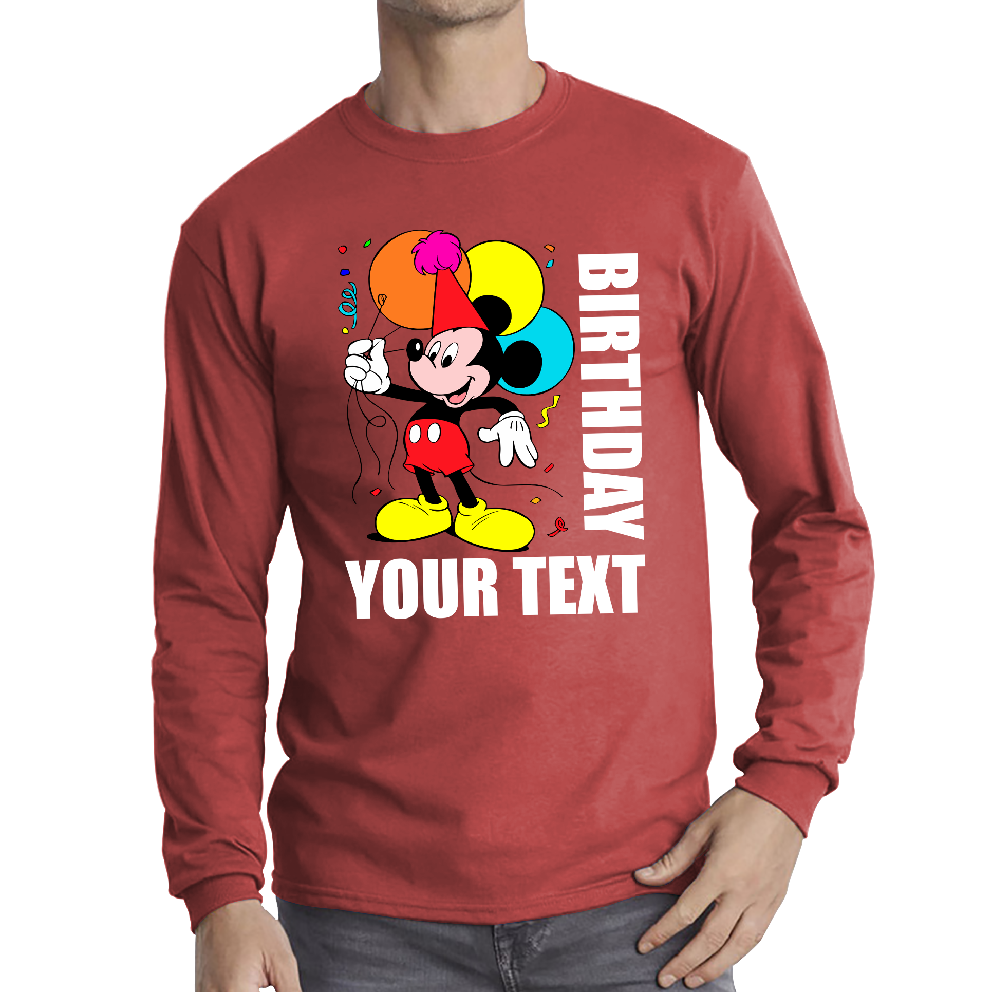 Personalised Disney Mickey Mouse Holding Balloons Birthday Your Text Disneyland Long Sleeve T Shirt