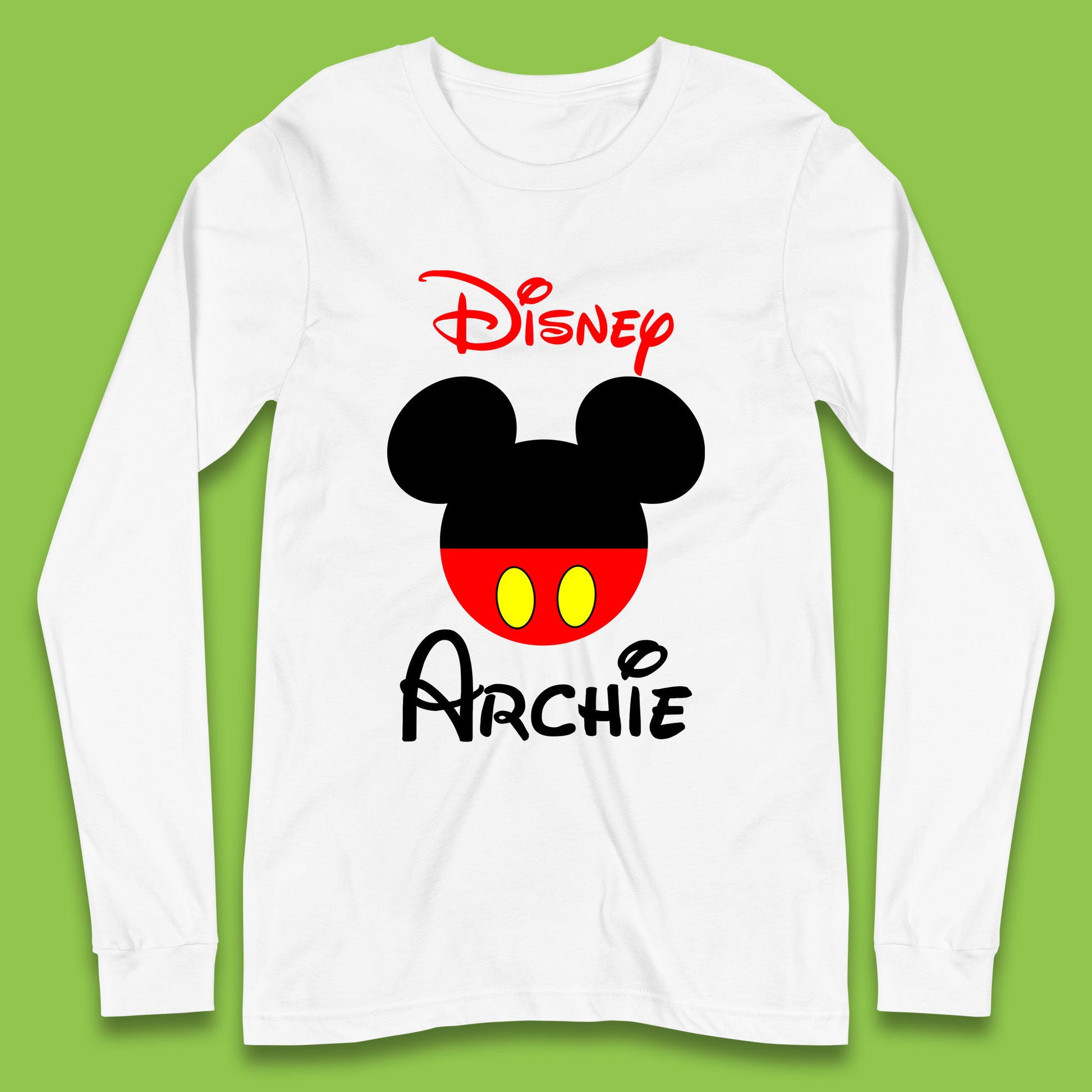 Personalised Disney Mickey Mouse Minnie Mouse Head Your Name Cute Character Disney World Long Sleeve T Shirt
