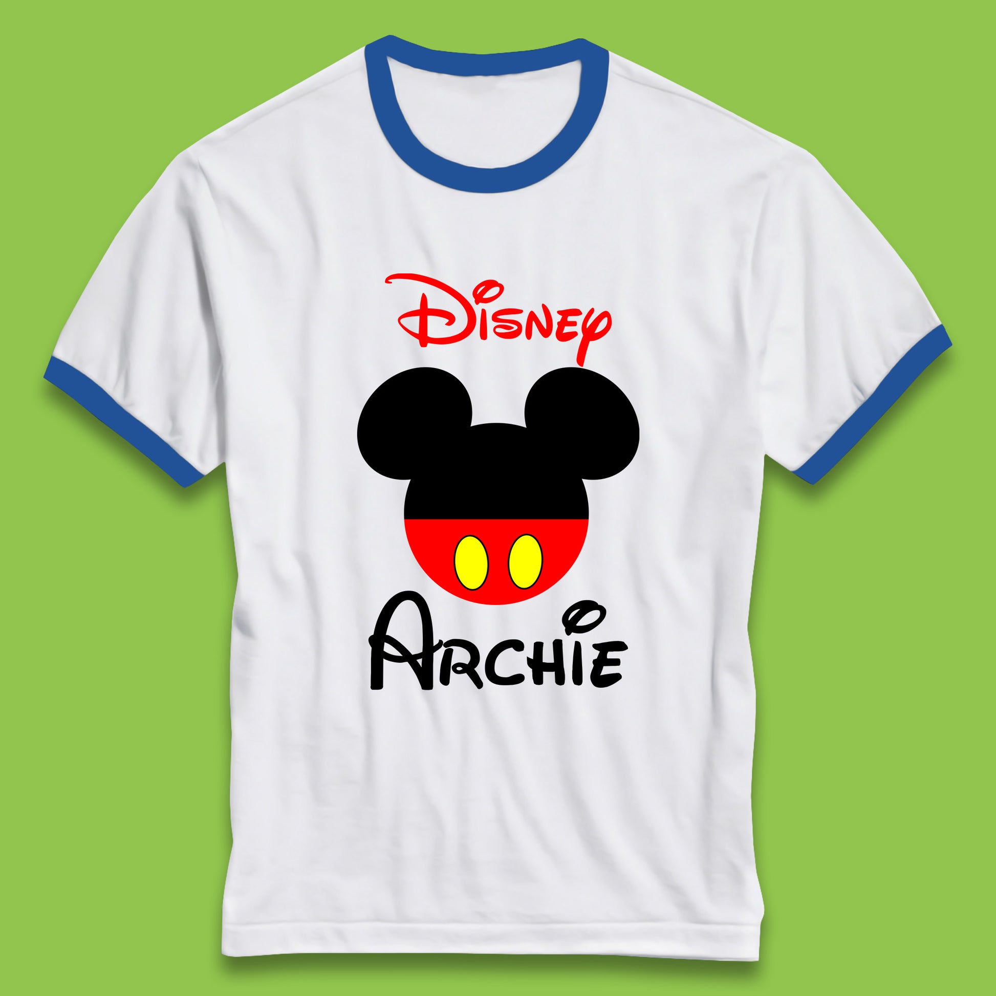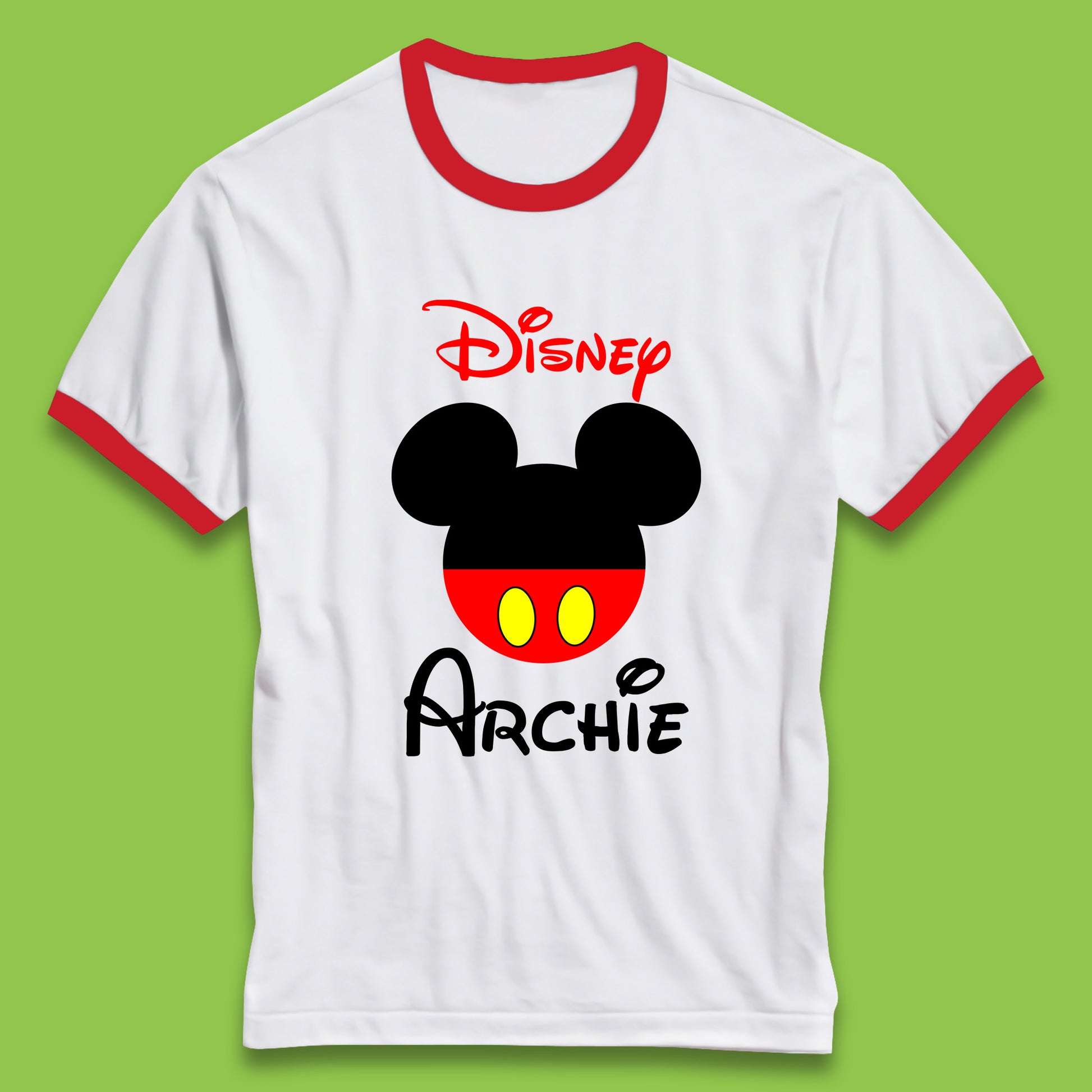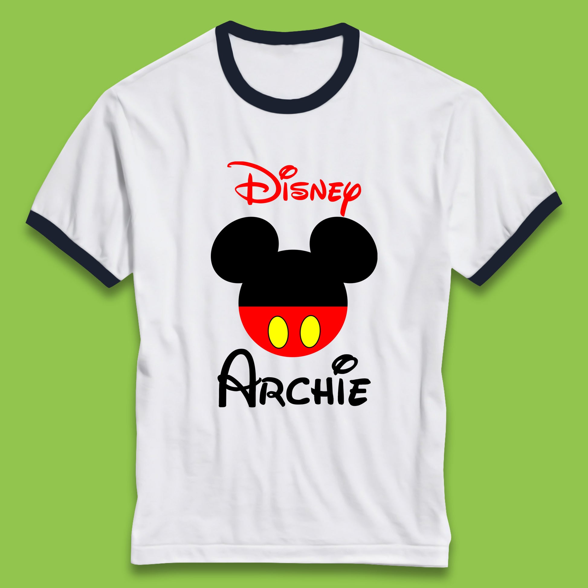 Personalised Disney Mickey Mouse Minnie Mouse Head Your Name Cute Character Disney World Ringer T Shirt