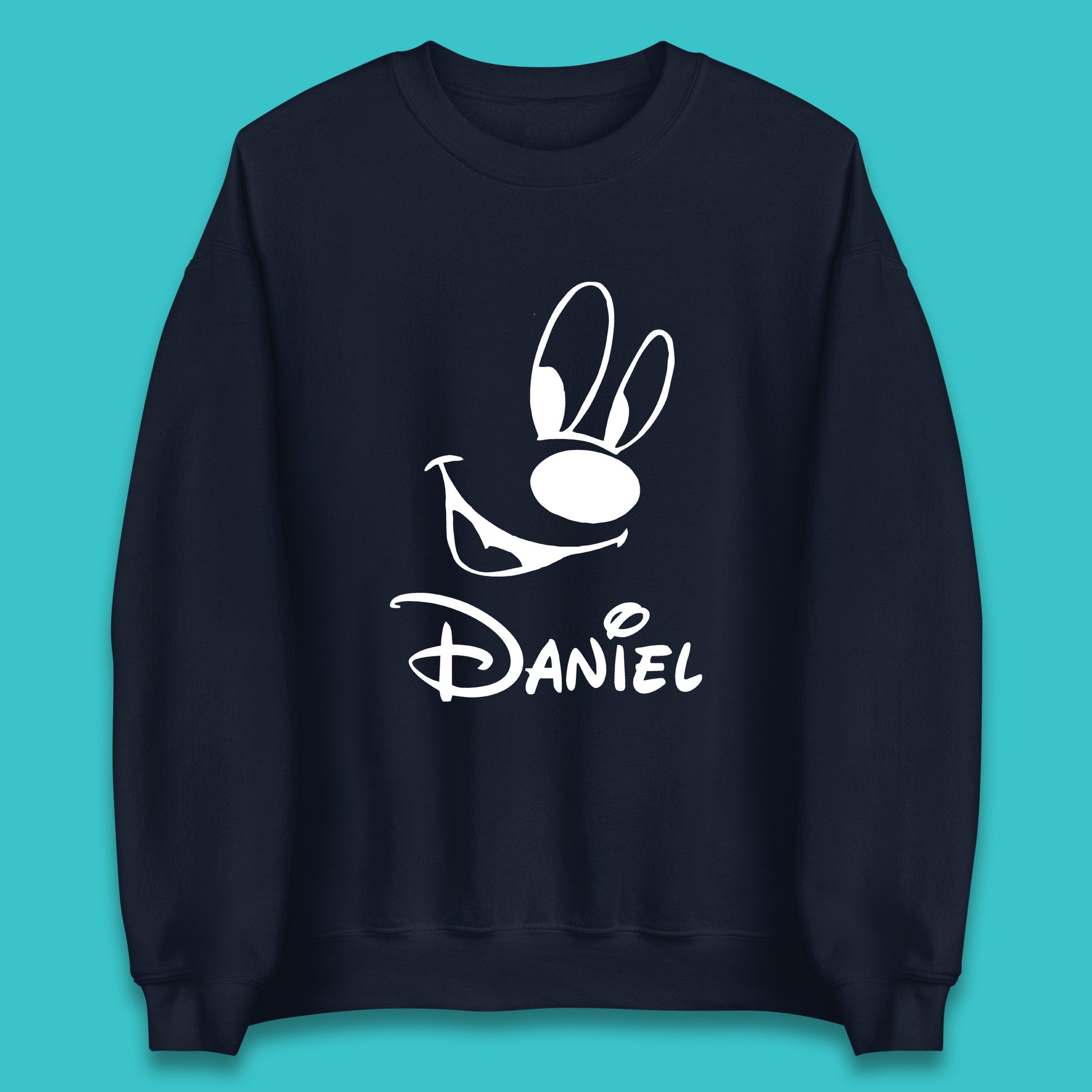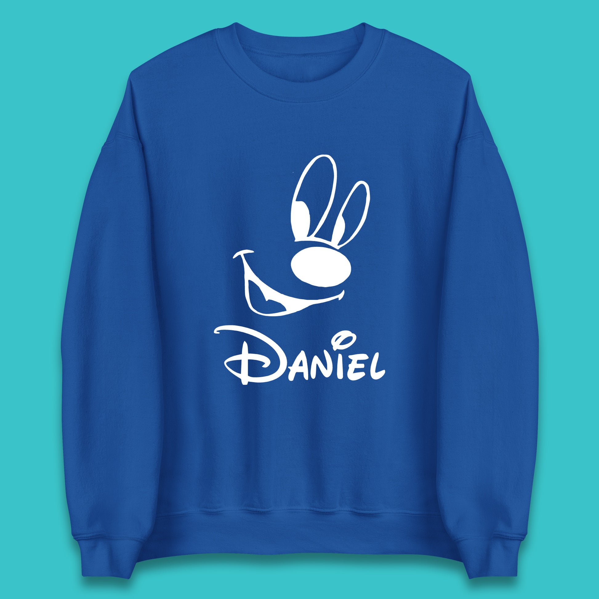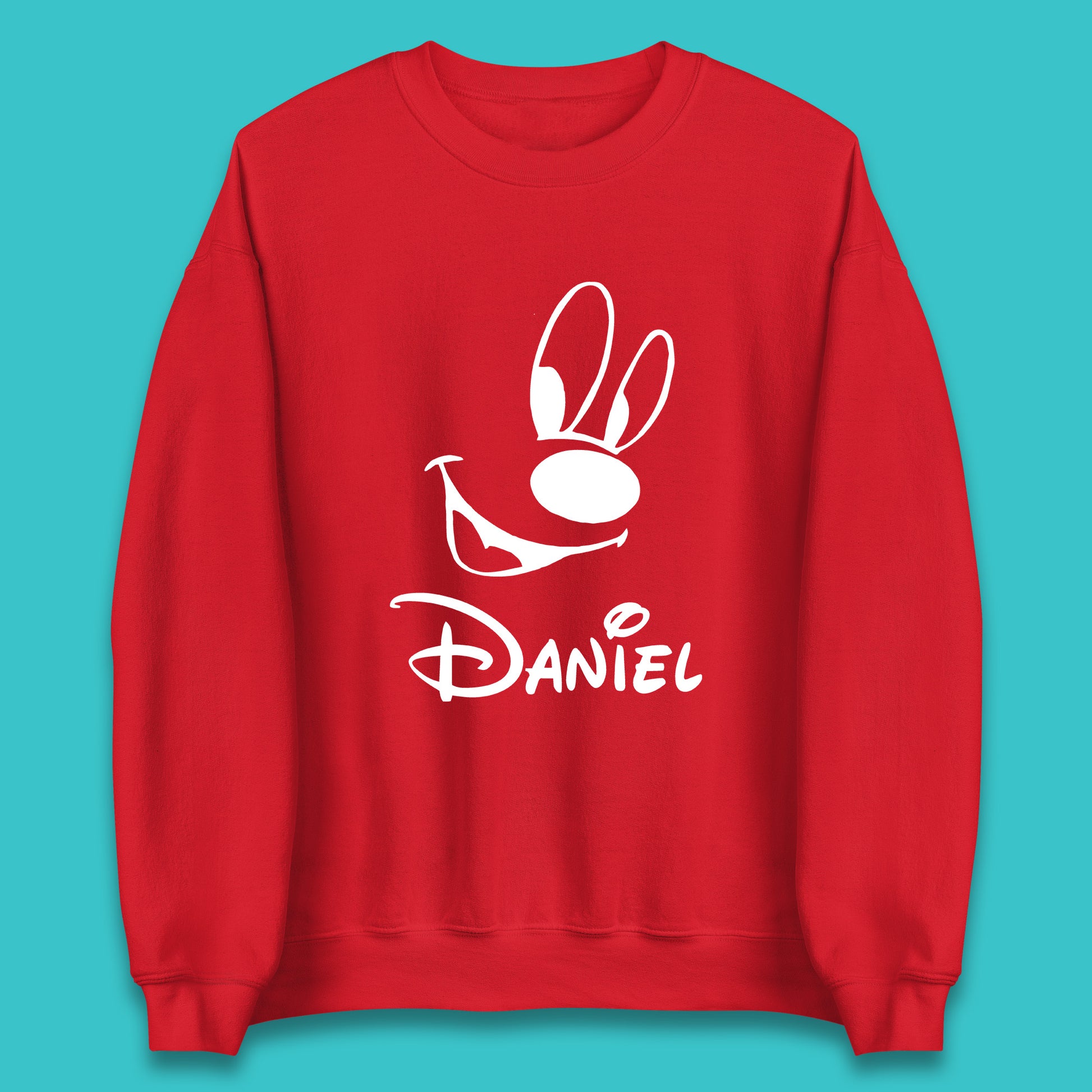 Personalised Disney Oswald the Lucky Rabbit Face Your Name Vintage Animated Cartoon Character Disney Trip Unisex Sweatshirt