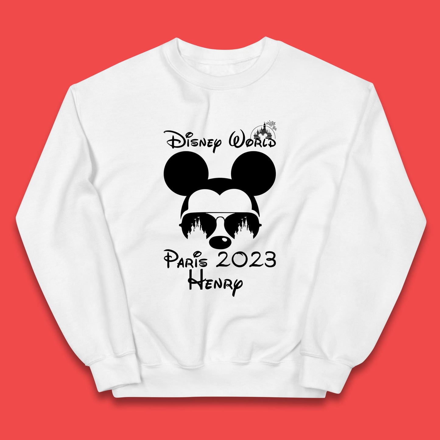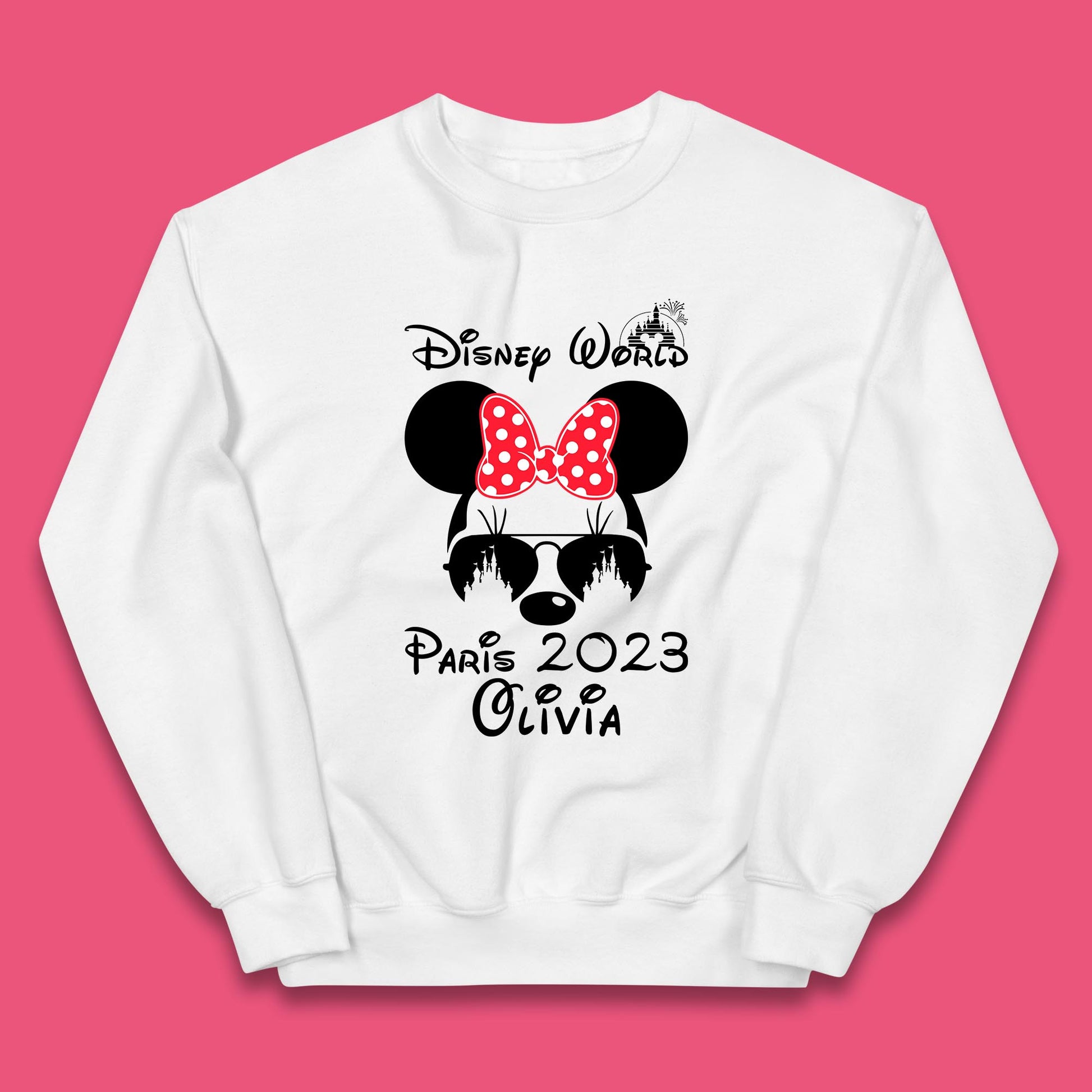 Personalised Disney World Paris 2023 Disney Castle Mickey Mouse Minnie Mouse Cartoon Magical Kingdom Disneyland Trip Kids Jumper