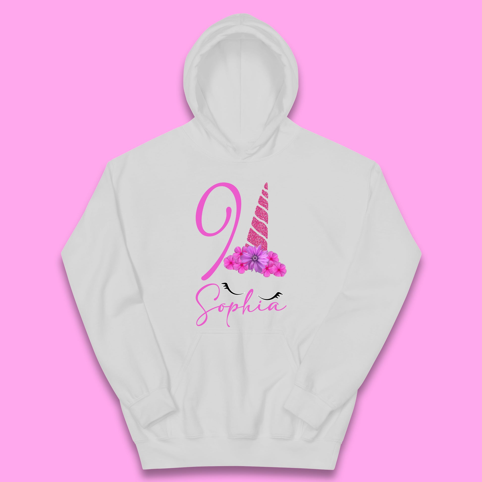 Personalised Floral Unicorn Head Your Name & Birthday Year Unicorn Horse & Pony Lover Magic Believer Unicorn Lovers Kids Hoodie