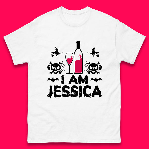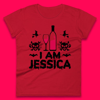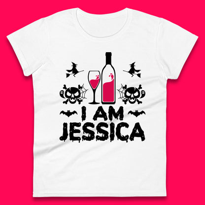 Personalised Halloween Your Name Funny Wine Drinking Scary Skull Drink Lover Womens Tee Top