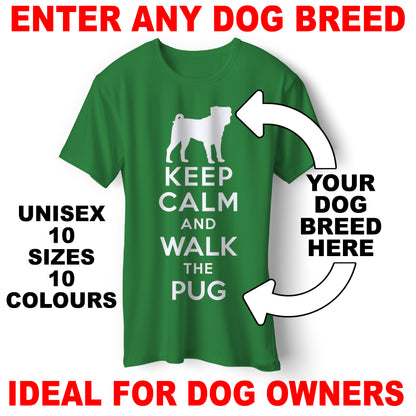 Personalised Keep Calm and Walk The Dog Unisex T-Shirt with any Dog Breed