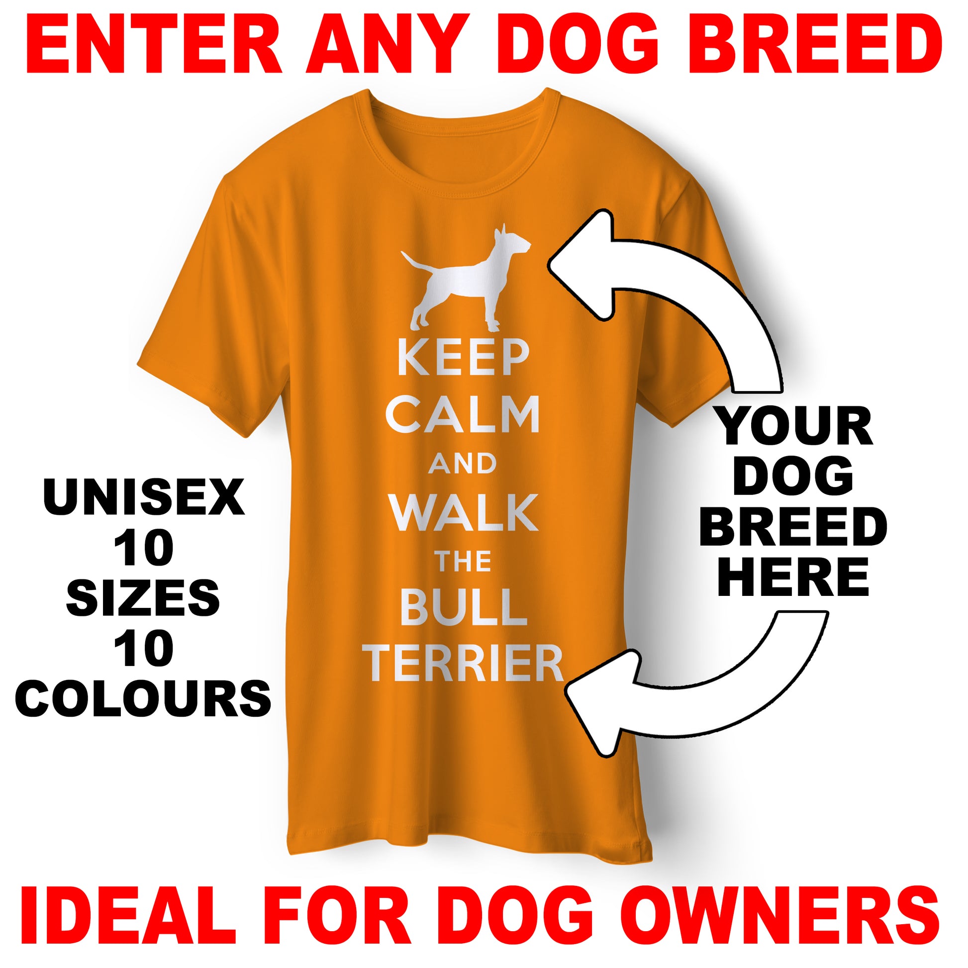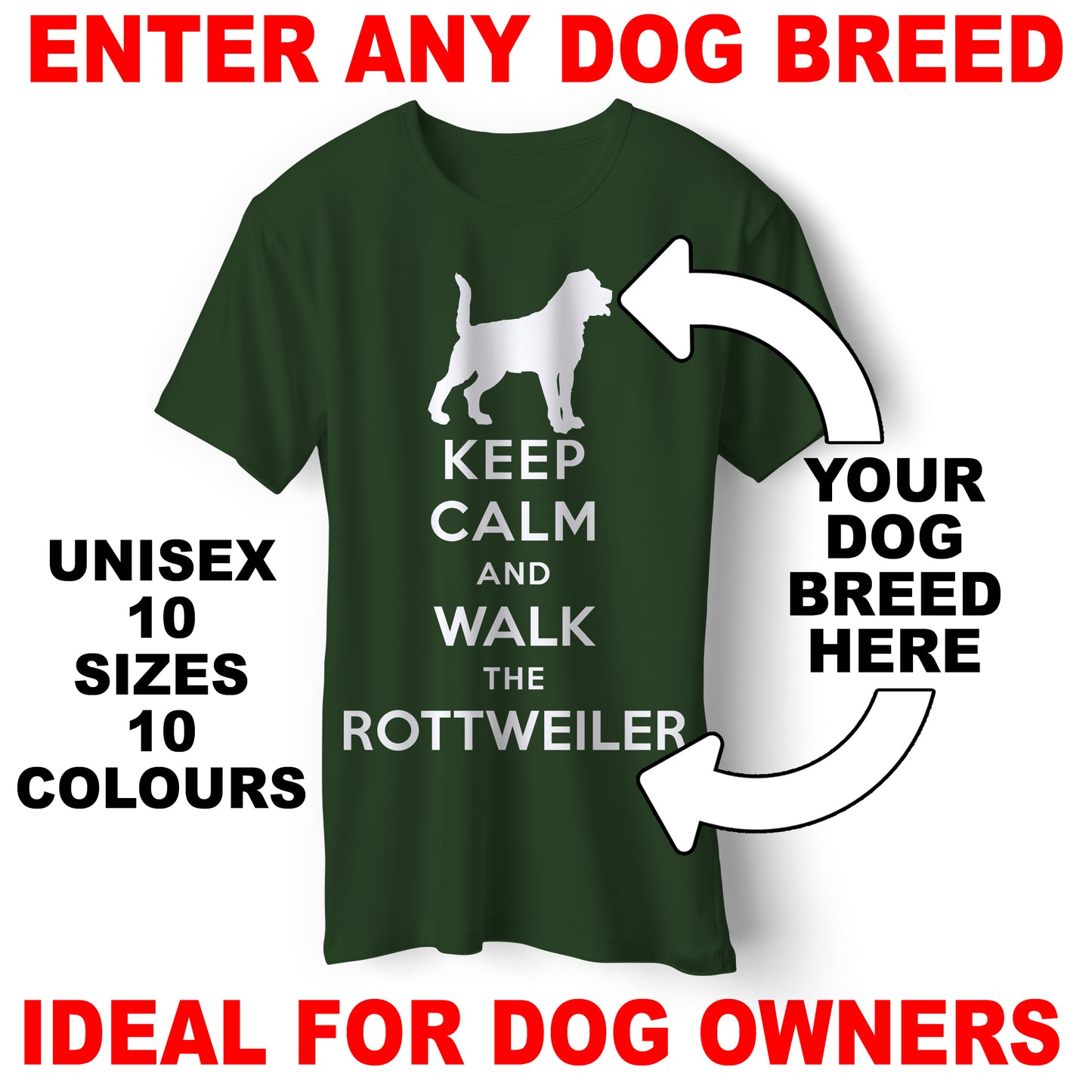 Made from 100% cotton the reactive dyed crew neck personalised keep calm and walk any dog t-shirt is taped shoulder to shoulder with enzyme washed twin and needle stitching on neck & shoulders. The unisex t-shirt is available in 10 colours and 10 sizes.