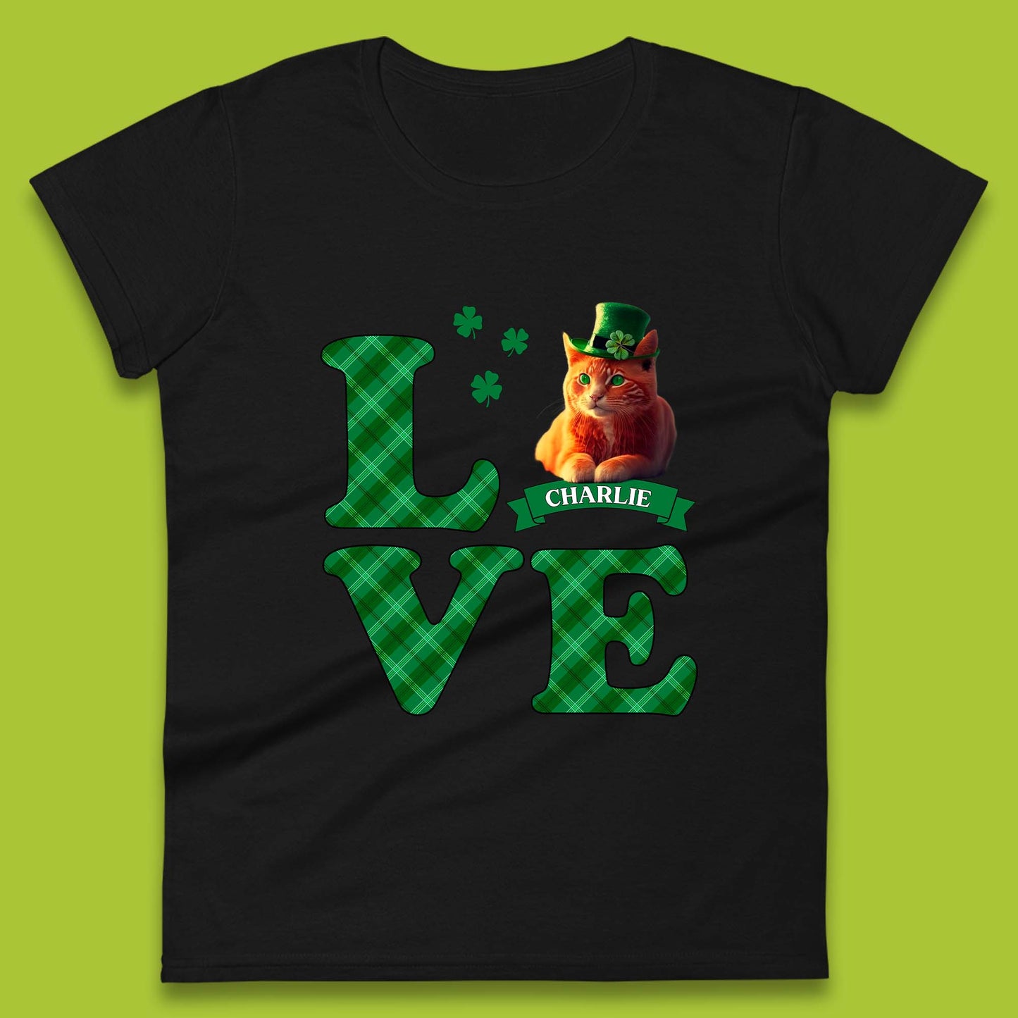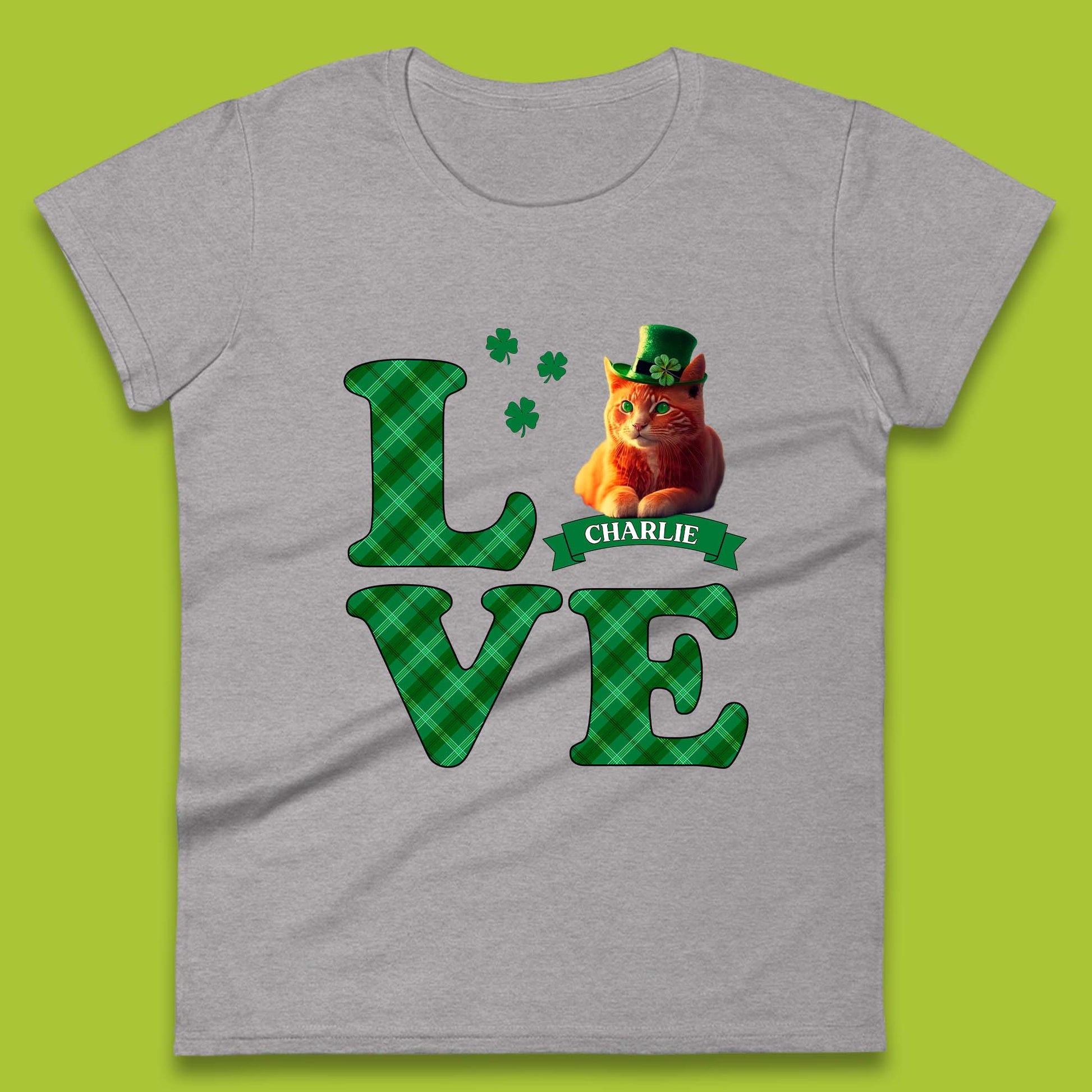 Personalised Love St. Patrick's Cat Womens T-Shirt