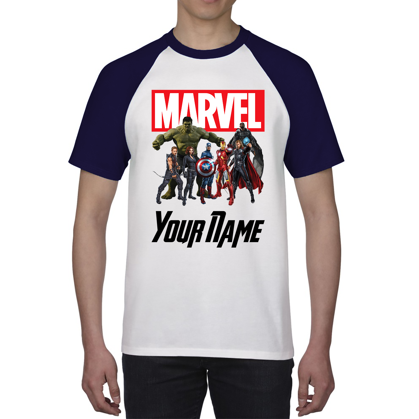 Personalised Marvel Avengers Superheroes Team Your Custom Name Baseball T Shirt