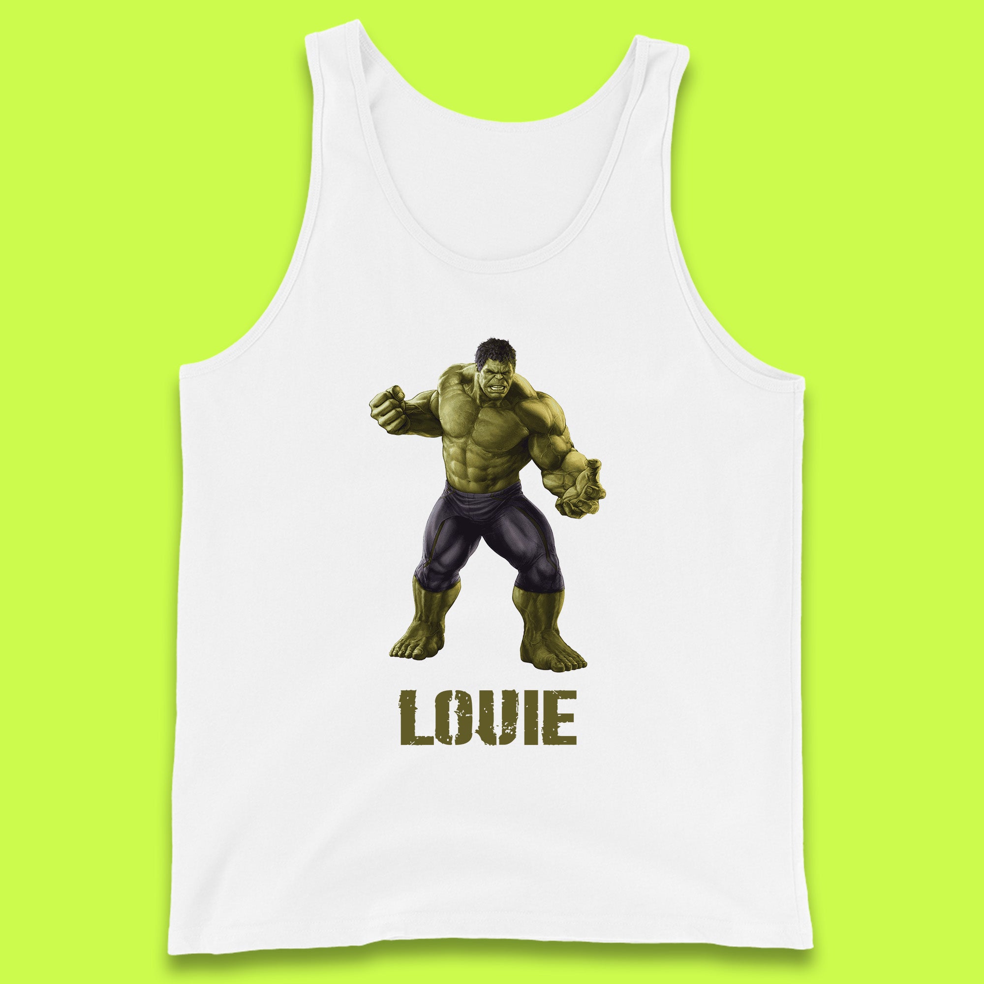 Personalised Marvel’s The Incredible Hulk Your Name Marvel Avengers Hulk Giant Man Angry Hulk Superhero Tank Top