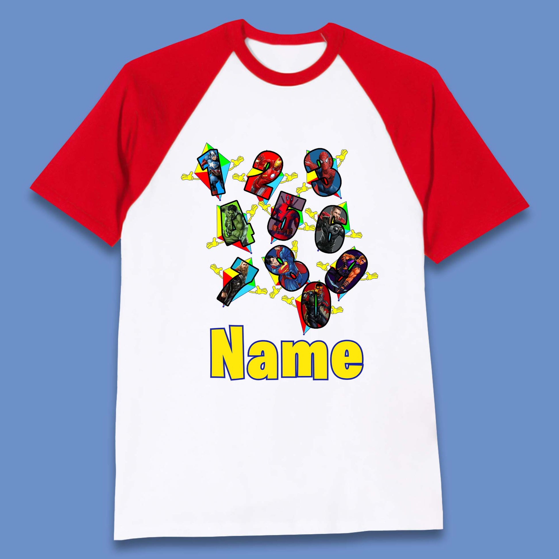 Personalised Number Day Superheroes Superheroes Baseball T-Shirt