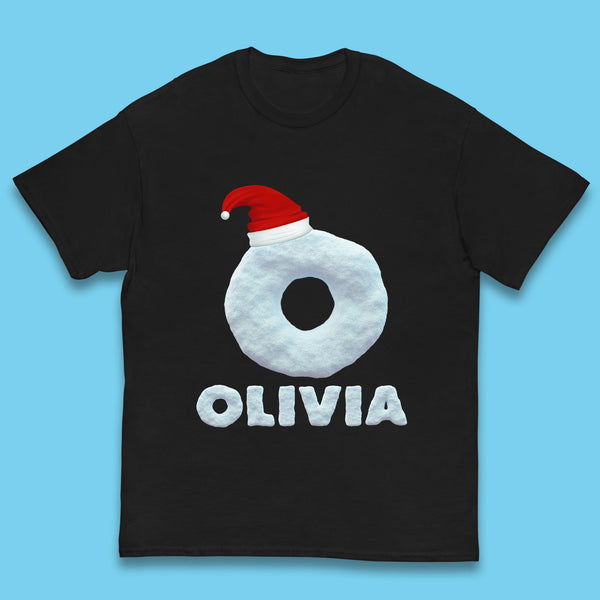 Personalised Your Name Christmas Snow Style Initial Letter Kids T Shirt