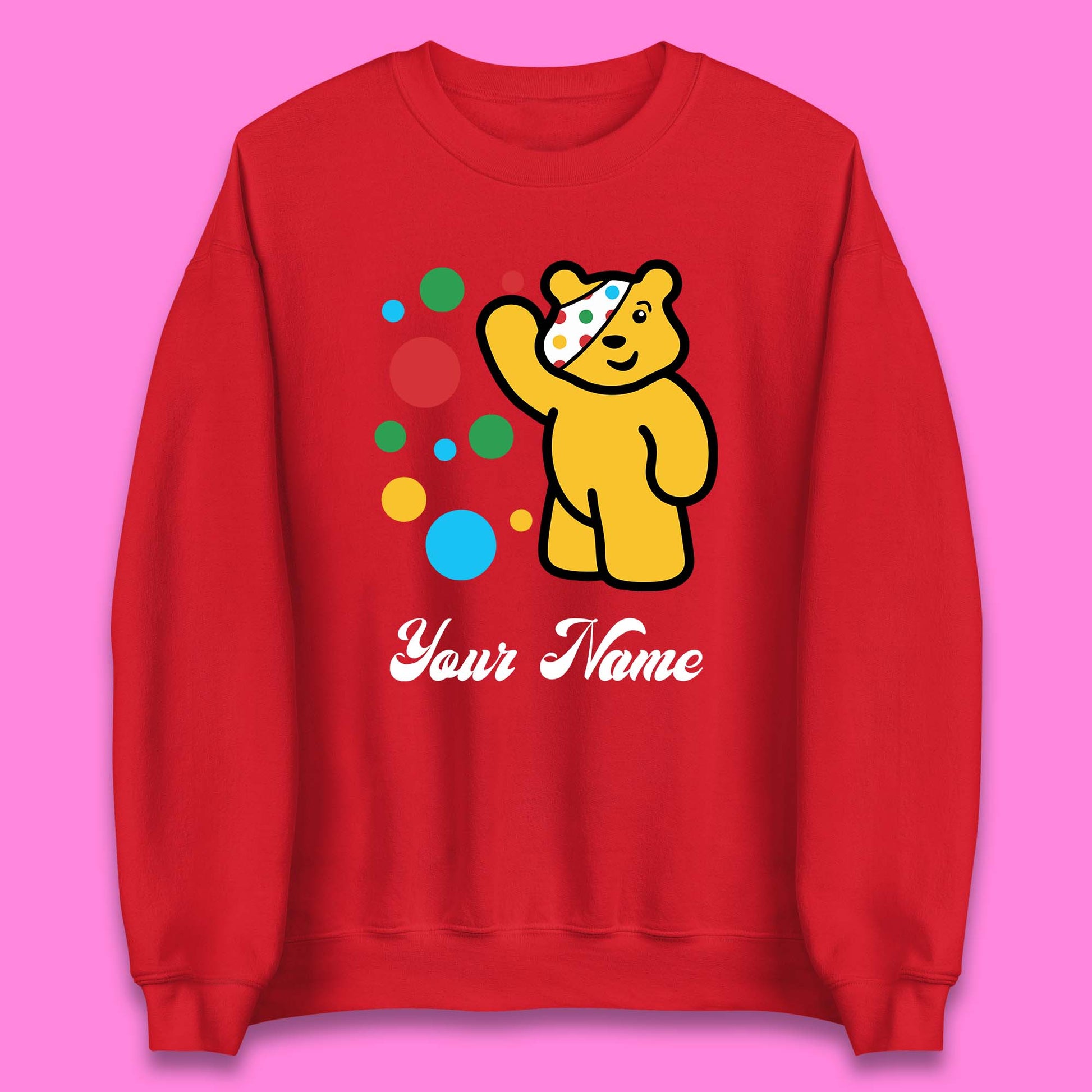 Personalised Spotty Pudsey Bear Hand Waving Dotty Spot Your Name Fundraising Spotty Bear Spotty Day Unisex Sweatshirt