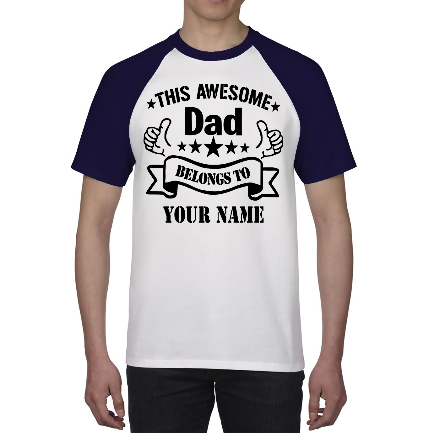 Personalised This Awesome Dad Belongs To Your Name Shirt Father's Day Gift For Dad Baseball T Shirt