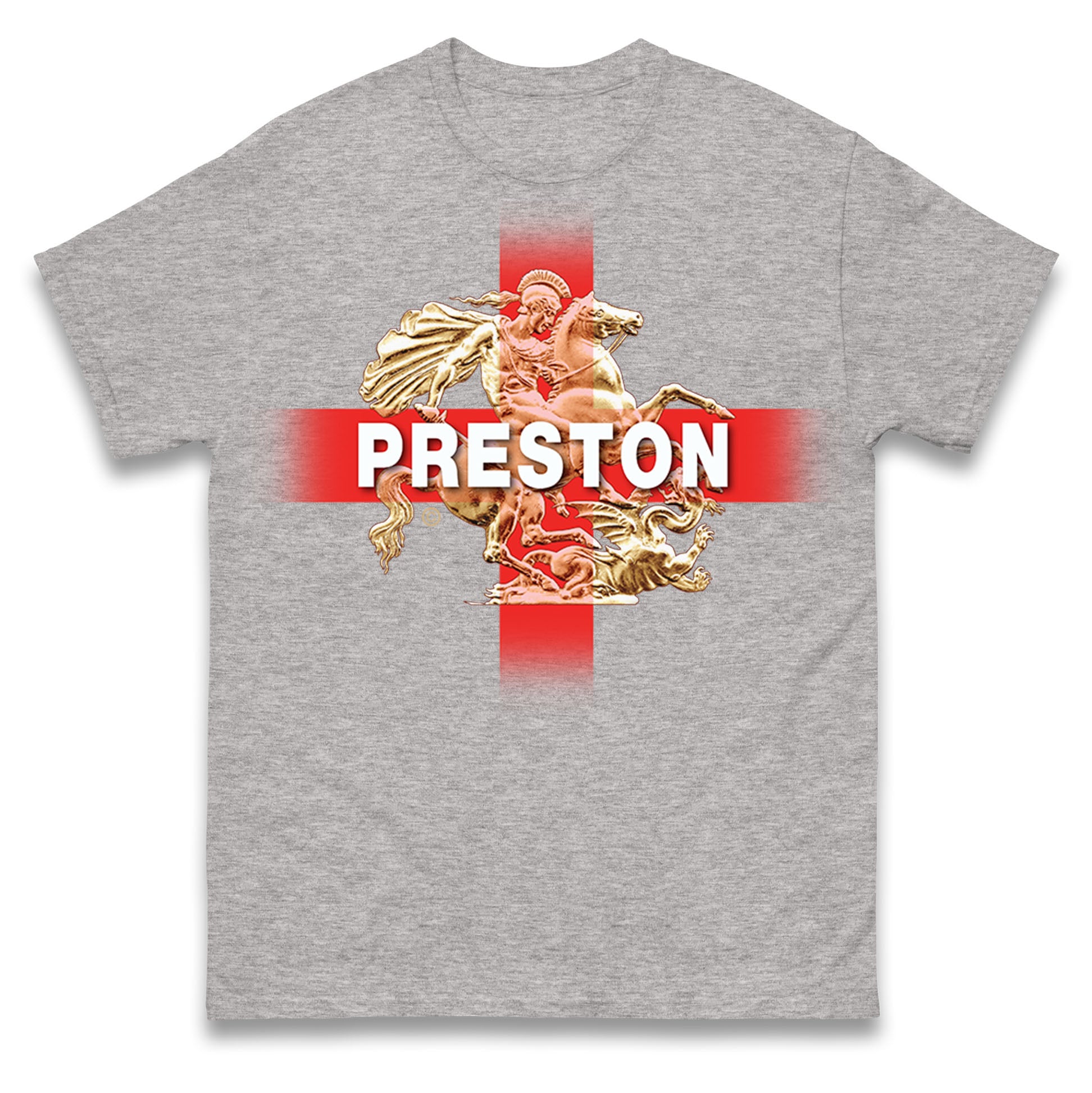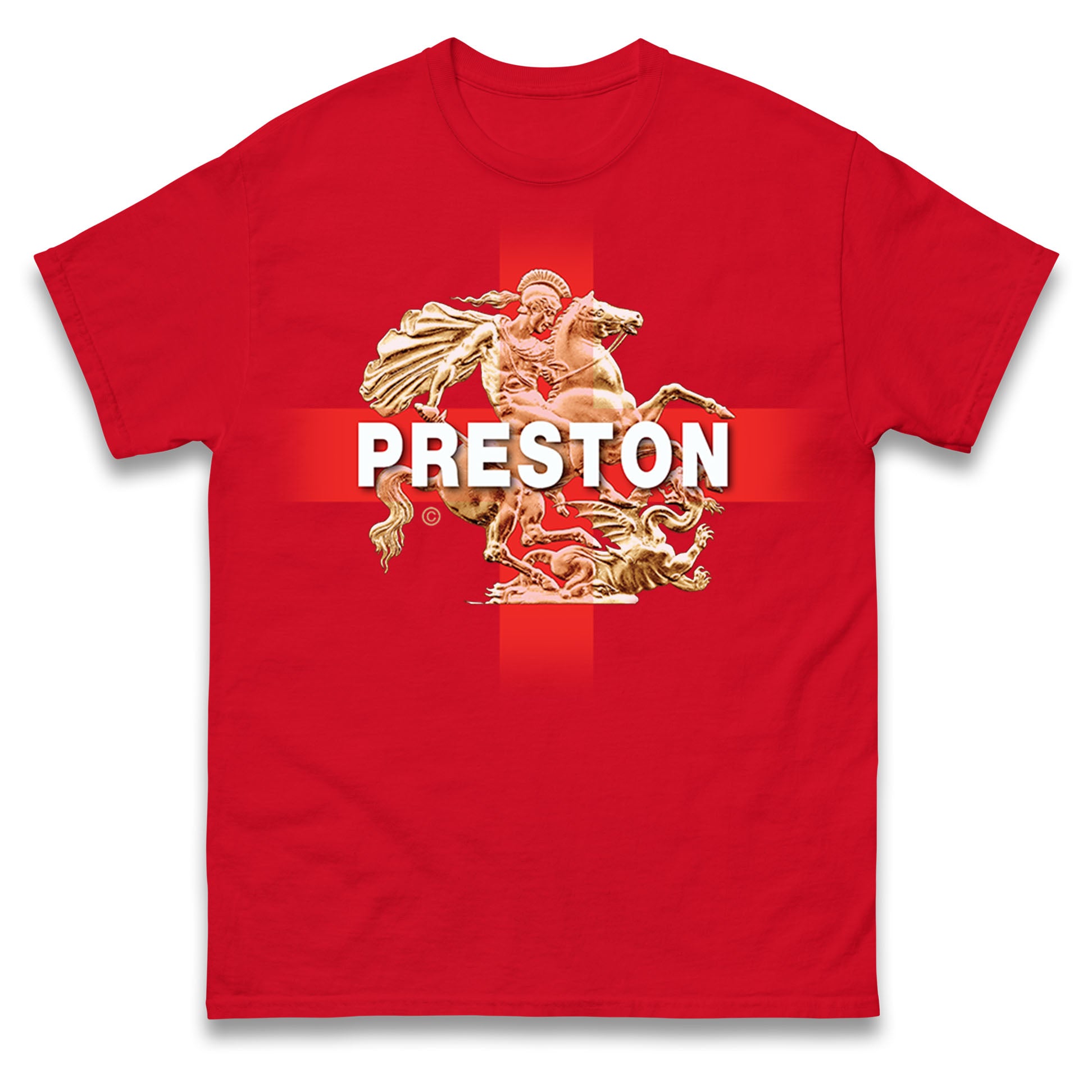 Celebrate Preston's iconic legend with our St George & The Dragon T-shirt. Crafted from premium cotton for exceptional comfort, this shirt features a meticulously detailed illustration that captures the historic battle. The durable print maintains its vibrant appearance through multiple washes, making it a lasting addition to any collection of local heritage apparel.