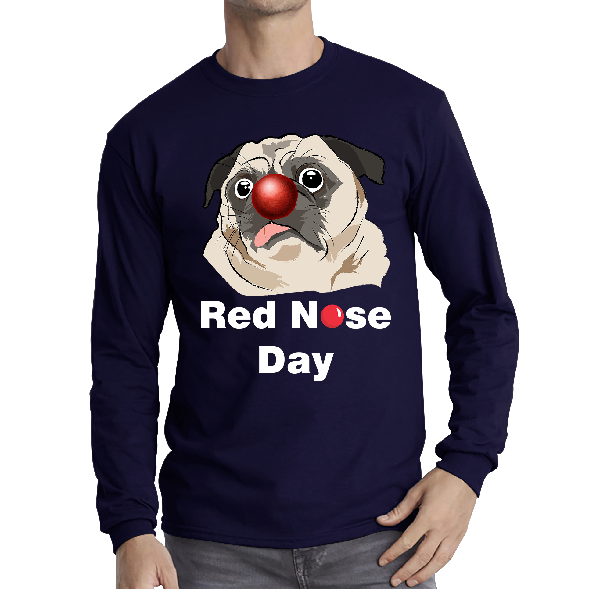 Pug Dog Red Nose Day Long Sleeve T Shirt