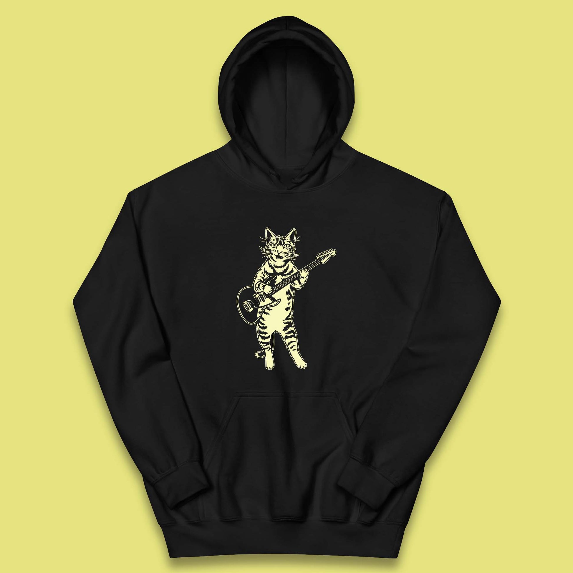 Rock Cat Playing Guitar Musician Guitarist Cat Music Lovers Kids Hoodie