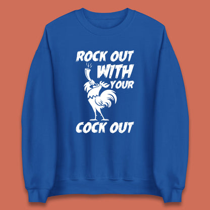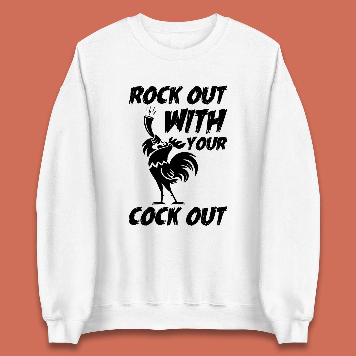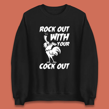 Rock Out With Your Cock Out Funny Offensive Cursed Offensive Meme Gag Joke Unisex Sweatshirt
