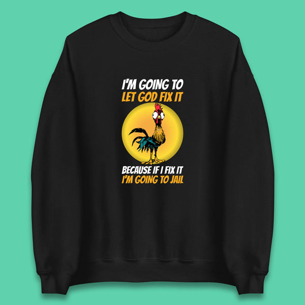 Rooster I'm Going To Let God Fix It Because If I Fix It I'm Going To Jail Funny Rooster Lovers Unisex Sweatshirt