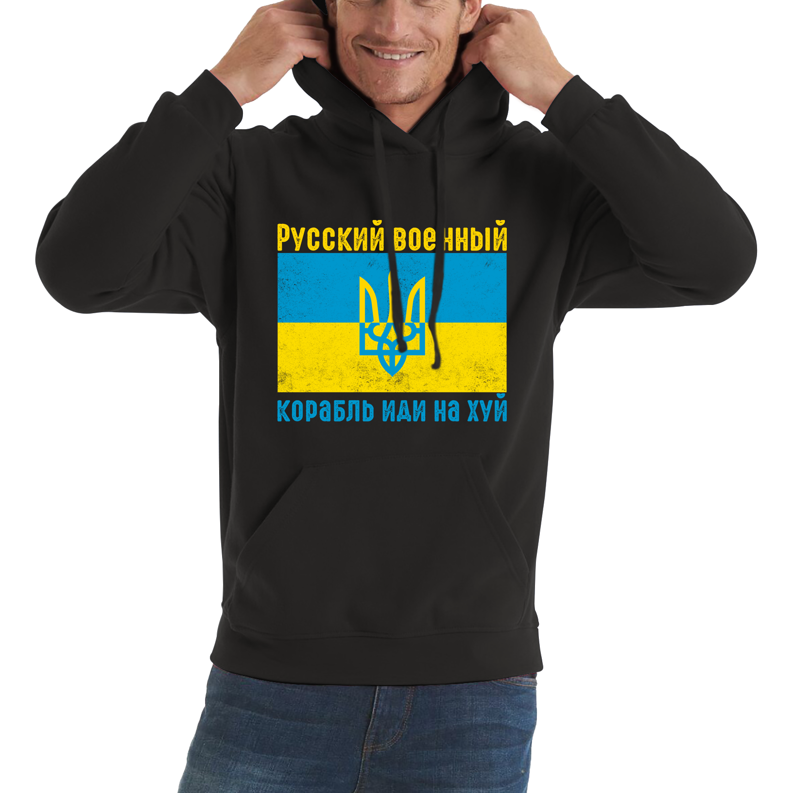 Express your defiance and style with our unisex hoodie featuring the iconic "Russian Warship Go Fuck Yourself" slogan. Perfect for those who want to make a statement while staying comfortable, this hoodie combines a powerful message with cozy, casual wear.
