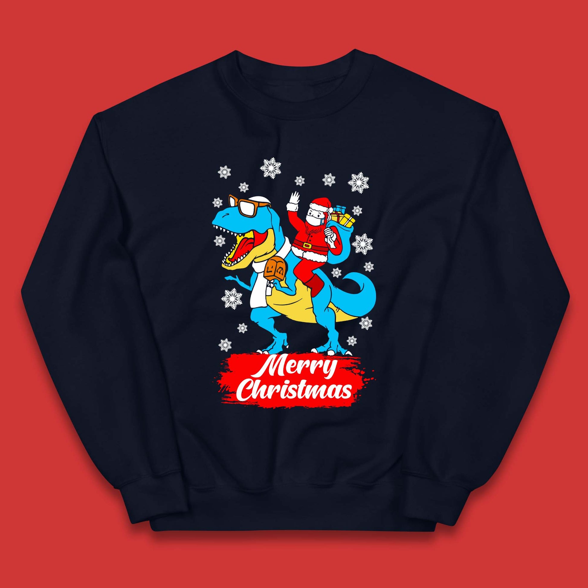 Santa Claus Riding T-Rex Christmas Kids Jumper
