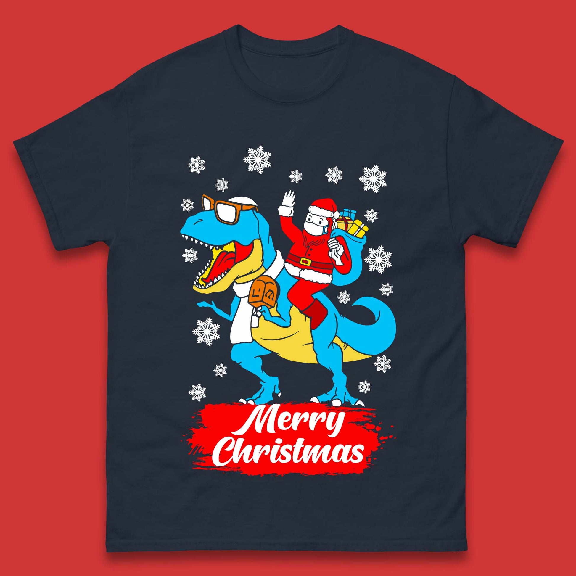 Santa Claus Riding T-Rex Christmas Mens T-Shirt