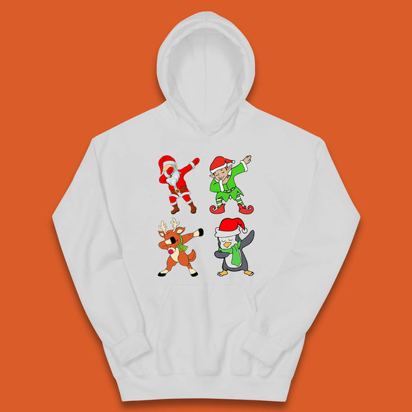 Get your little ones ready for festive fun with the "Christmas Santa Claus & Friends Dabbing Dance" Kids Jumper! Featuring Santa and his holiday crew striking a dab pose, this playful jumper adds a touch of humor to their winter wardrobe.