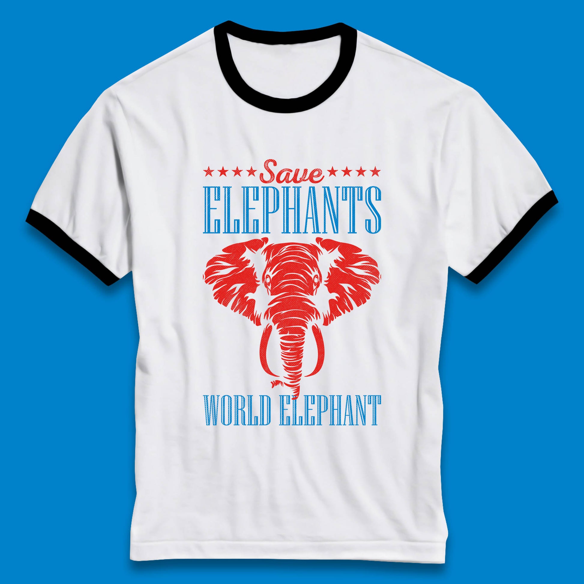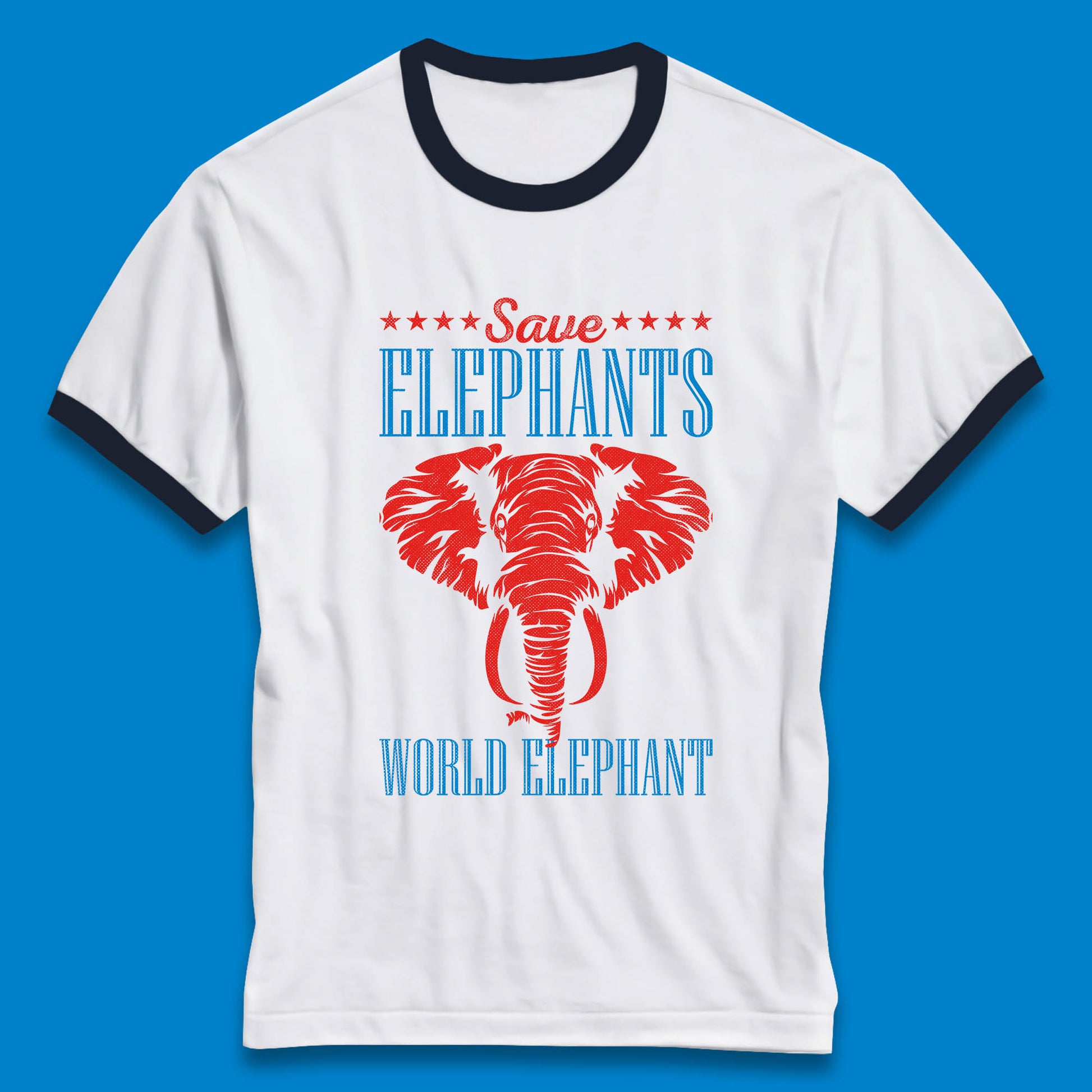 Save The Elephants World Elephant Day Zoo Animal Wildlife Ringer T Shirt