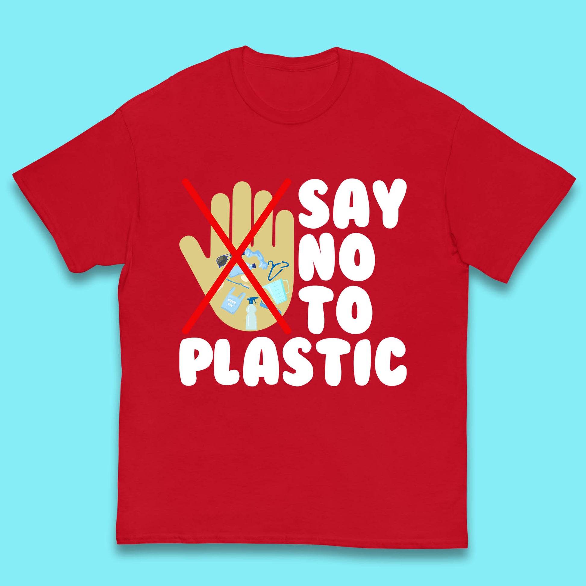 Say No To Plastic Earth Day Plastic Free Life Help Ocean Pollution Recycle Environmental Kids T Shirt