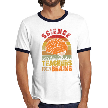 Science Teachers Loves Brains Shirt Funny Vintage Zombies Scientific Joke Spooky Gift Ringer T Shirt
