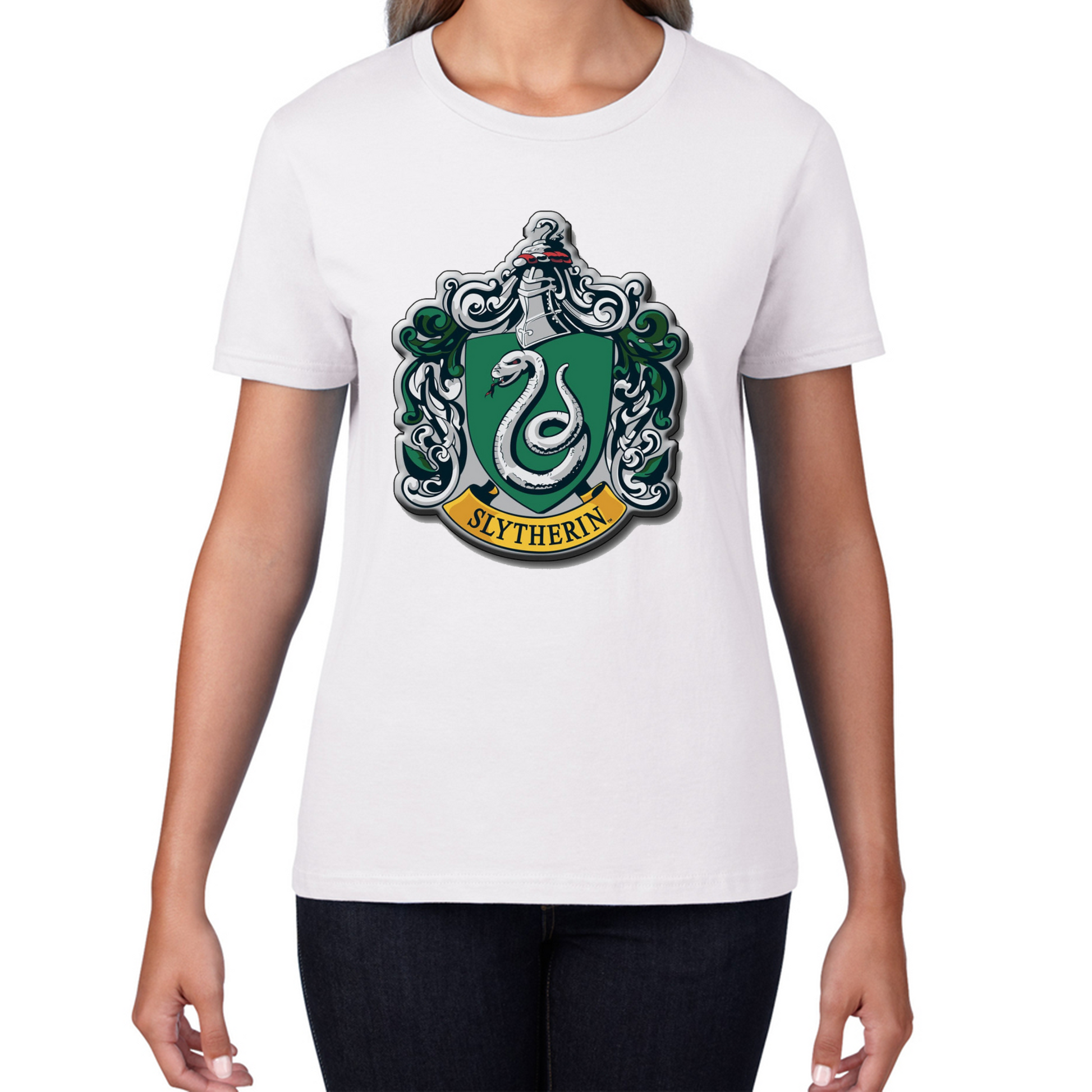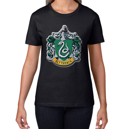 Showcase your Slytherin pride in style with the Slytherin Logo Harry Potter Ladies T-Shirt. Designed for witches who embody ambition, cunning, and leadership, this sleek and comfortable tee is perfect for casual wear or magical adventures.