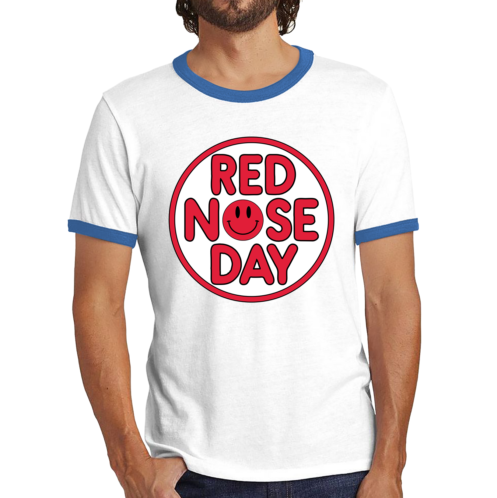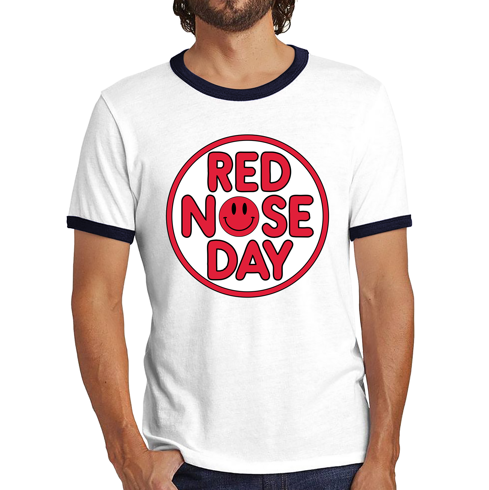 Smiley Face Red Nose Day Ringer T Shirt. 50% Goes To Charity