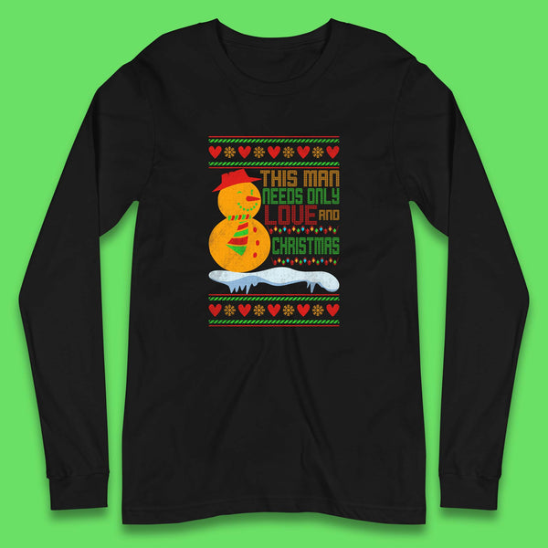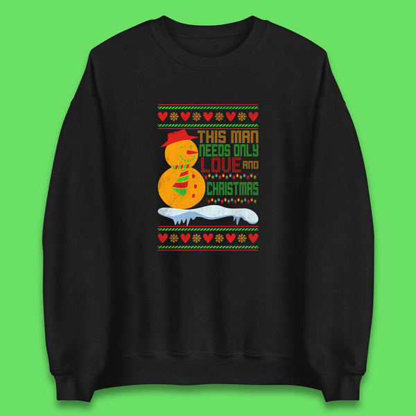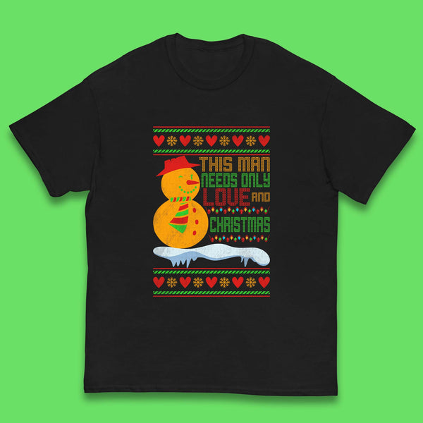 This Man Need Only Love And Christmas Snowman Kids Jumper