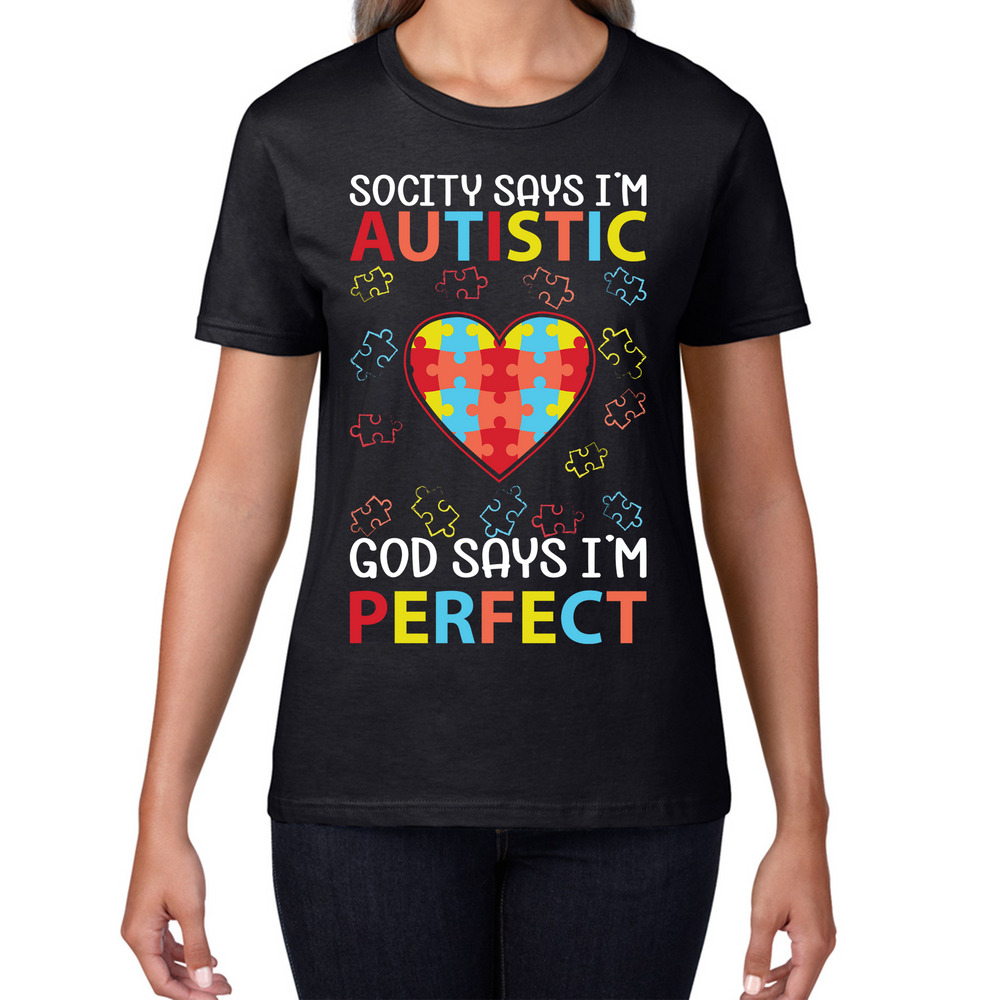Society Says I'm Autistic God Says I'm Perfect Autism Awareness Ladies T Shirt