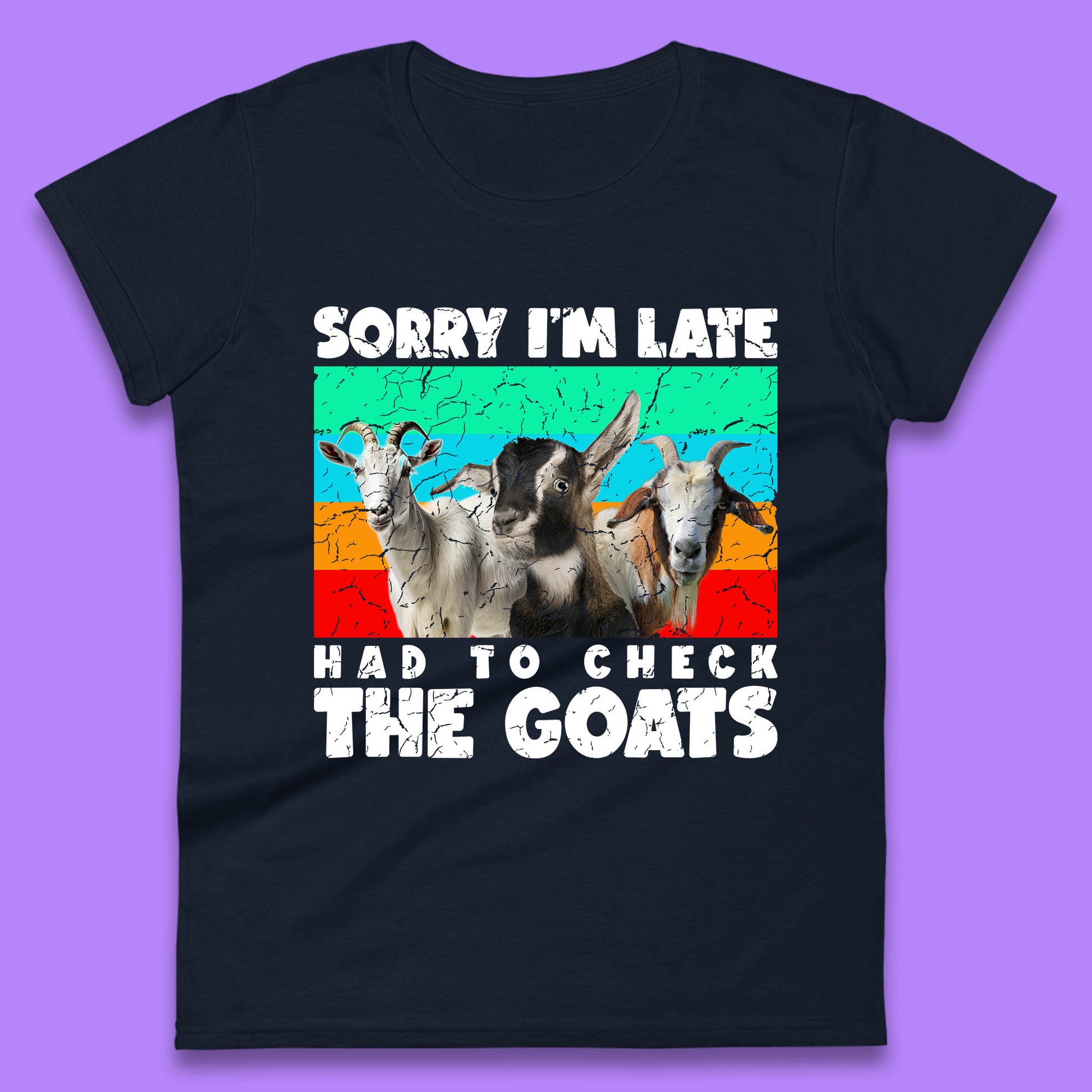 Sorry I'm Late Had To Check The Goats Vintage Goat Lover Farmer Womens Tee Top