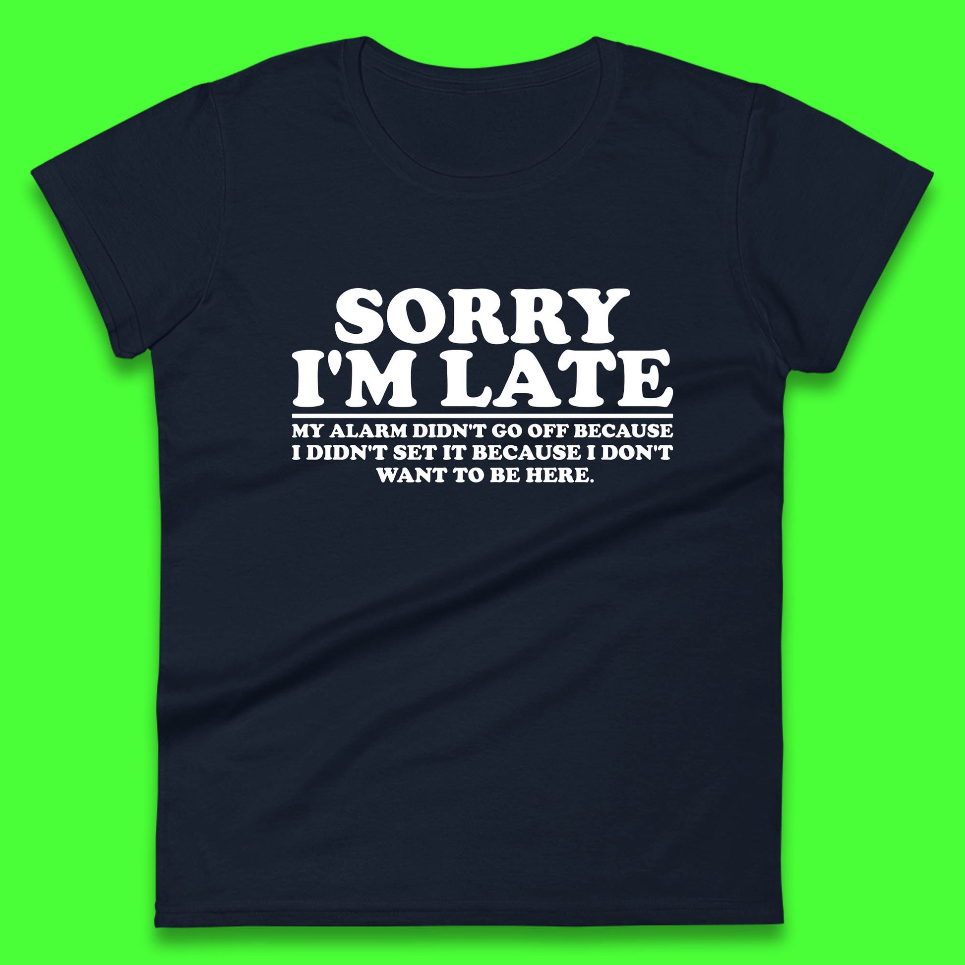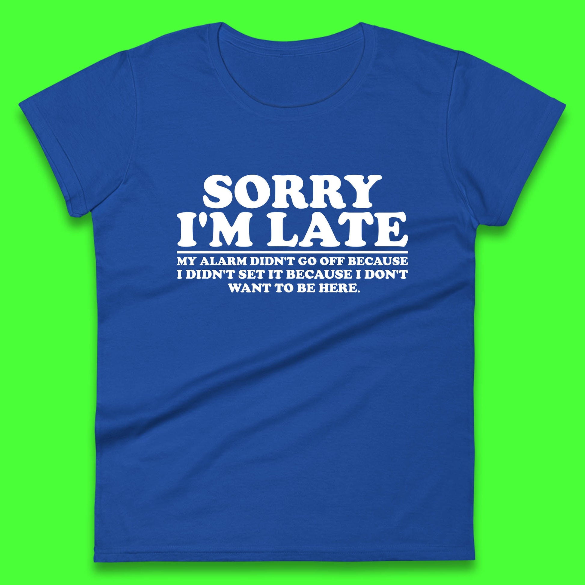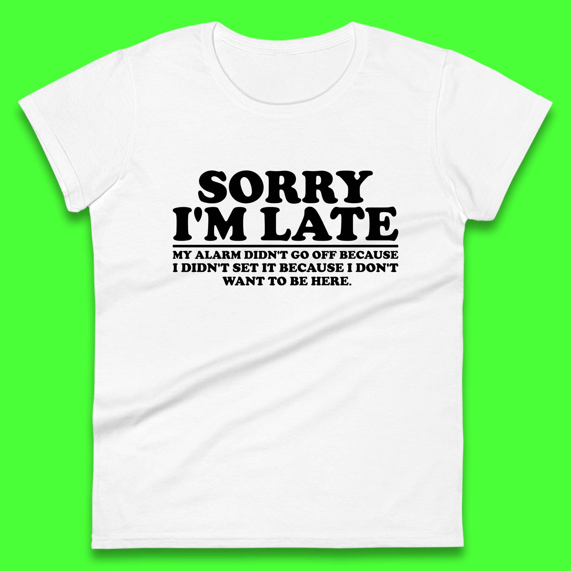 Sorry I'm Late My Alarm Didn't Go Off Funny Quote Womens Tee Top