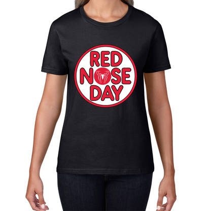 Celebrate Red Nose Day with a superhero twist in the Spider-Man Red Nose Day ladies t-shirt. This stylish and comfortable tee combines Spider-Man's iconic imagery with the playful spirit of Red Nose Day, offering a chic and meaningful addition to your wardrobe.