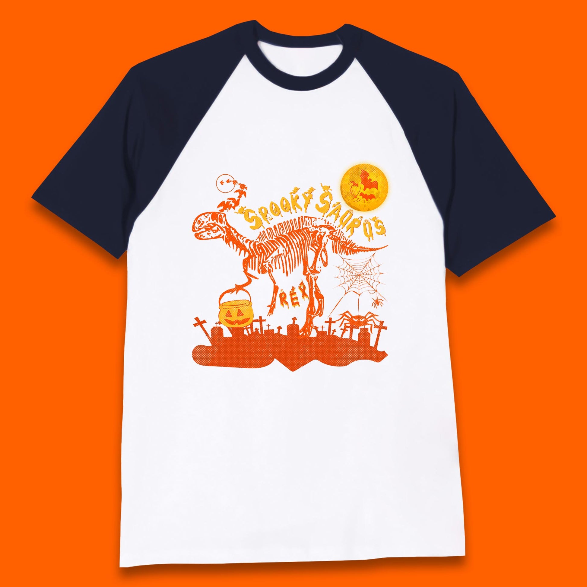 Spooky Saurus Rex Halloween Dinosaur Skeleton T-Rex Scary Pumpkin Baseball T Shirt