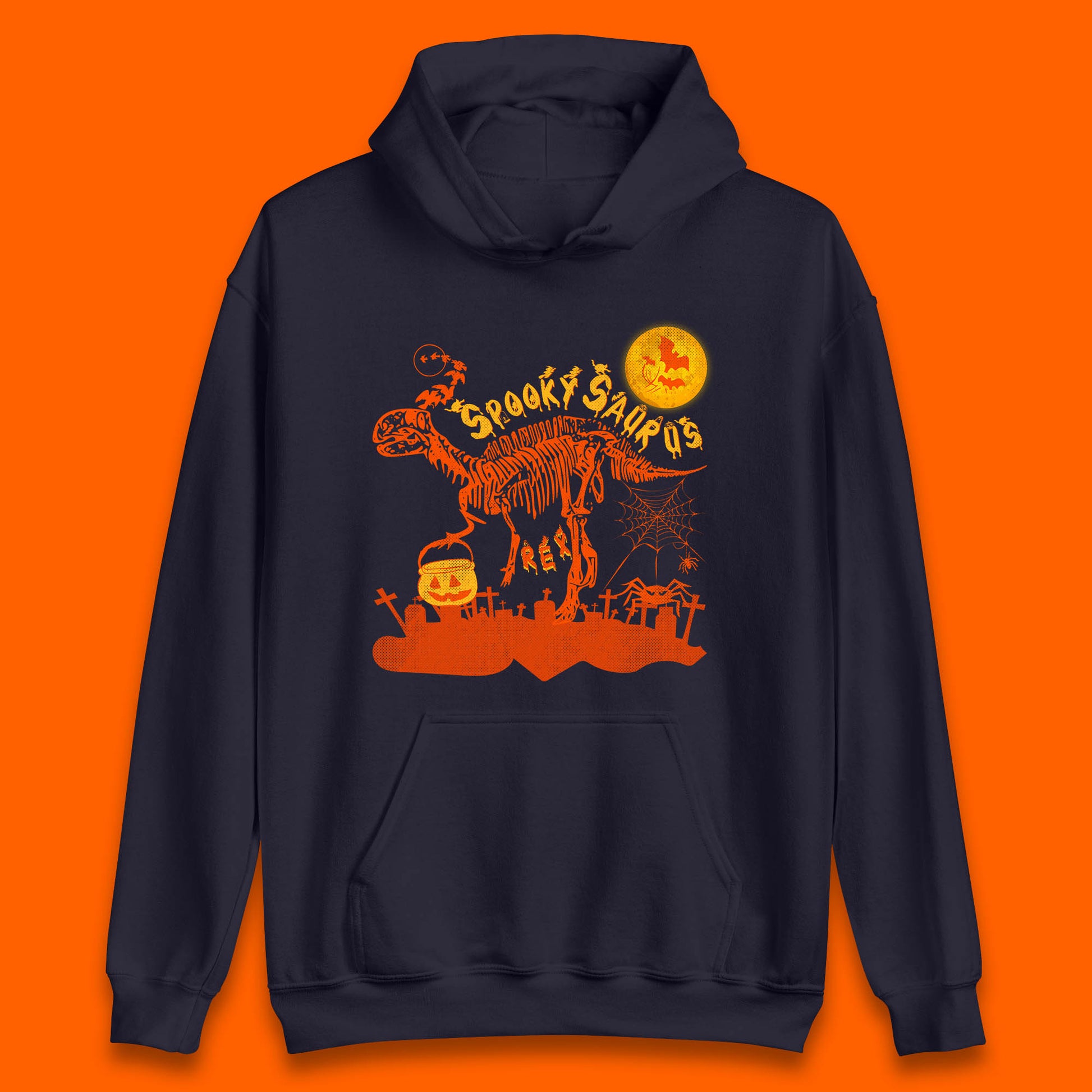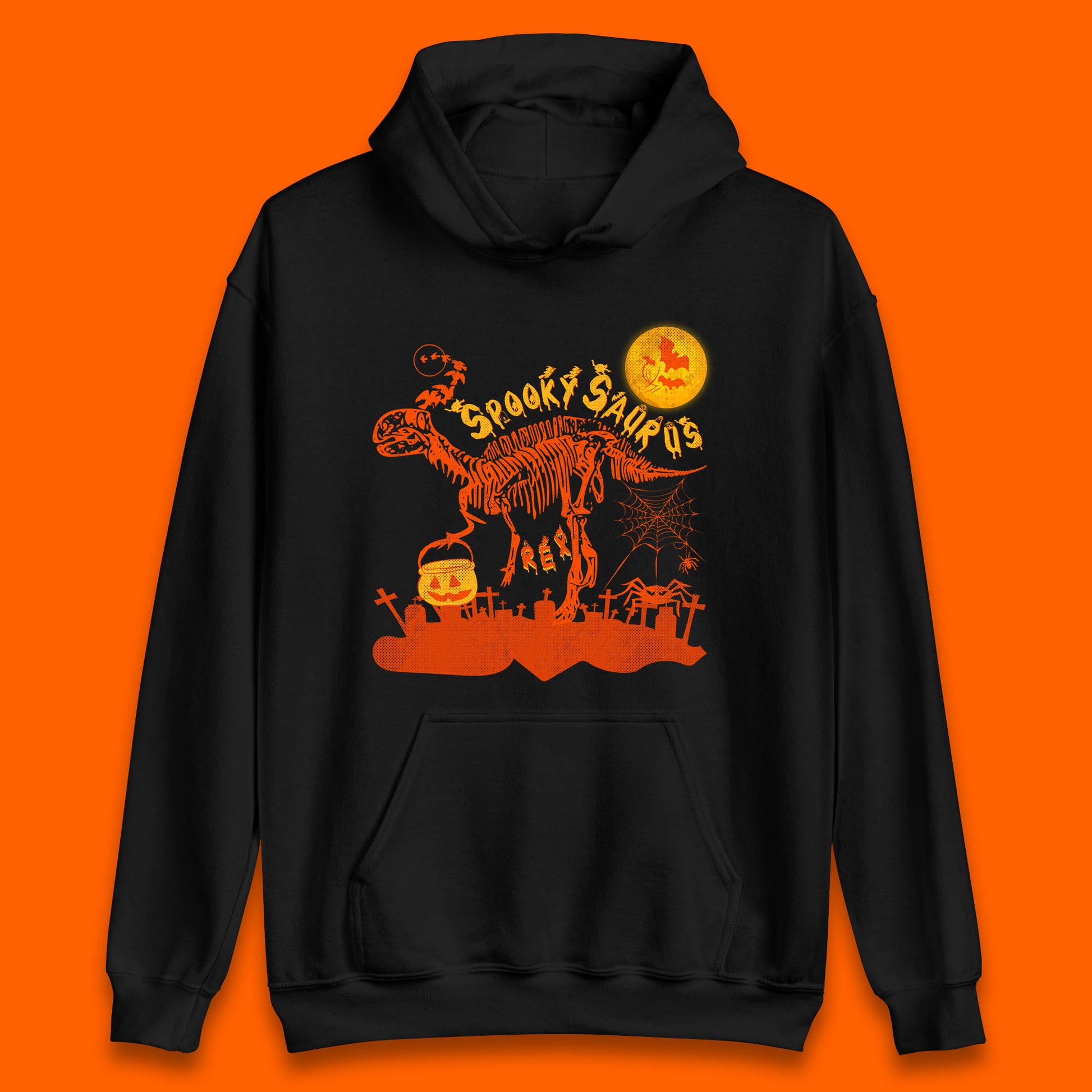 Spooky Saurus Rex Halloween Dinosaur Skeleton T-Rex Scary Pumpkin Unisex Hoodie