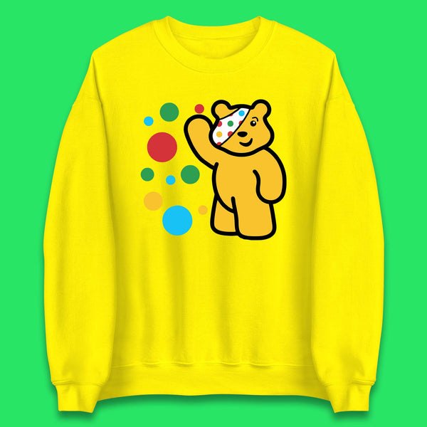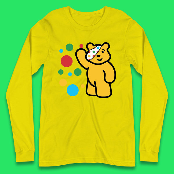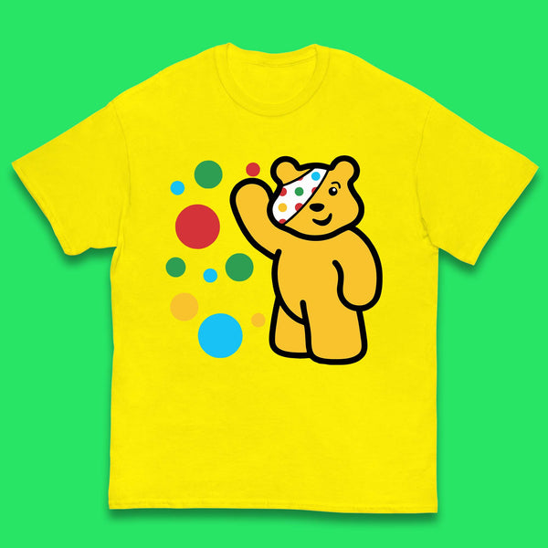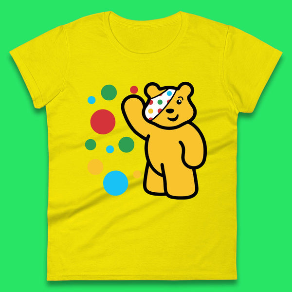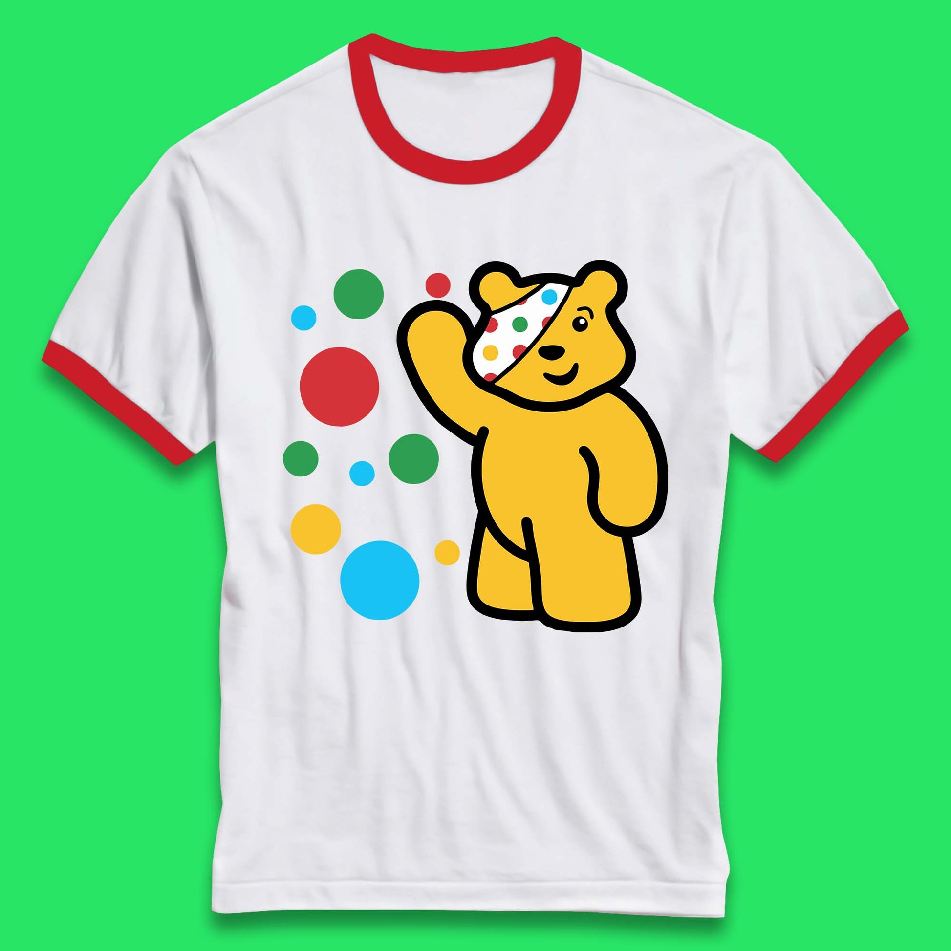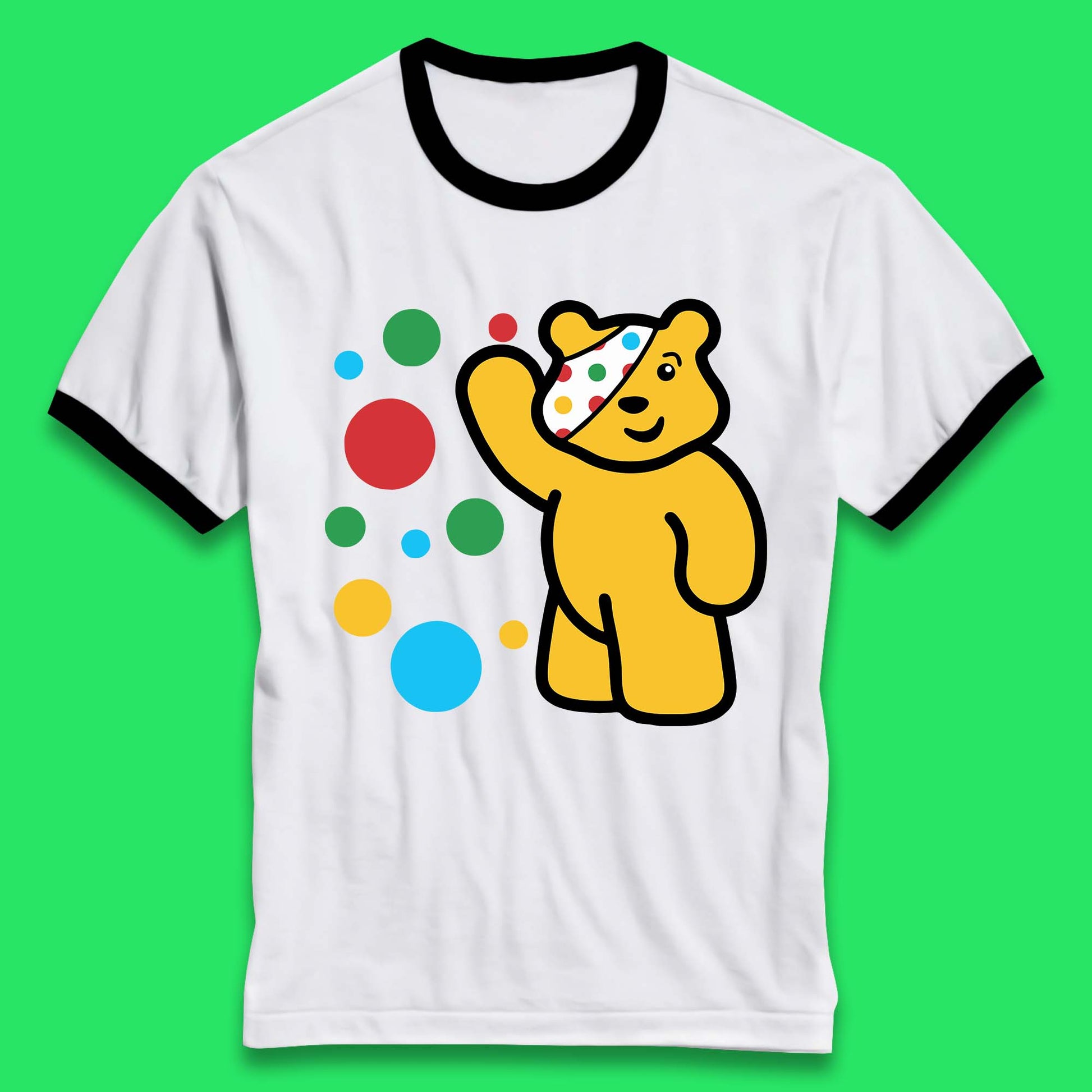 Spotty Pudsey Bear Hand Waving Dotty Spot Fundraising Children In Need Spotty Bear Spotty Day Ringer T Shirt
