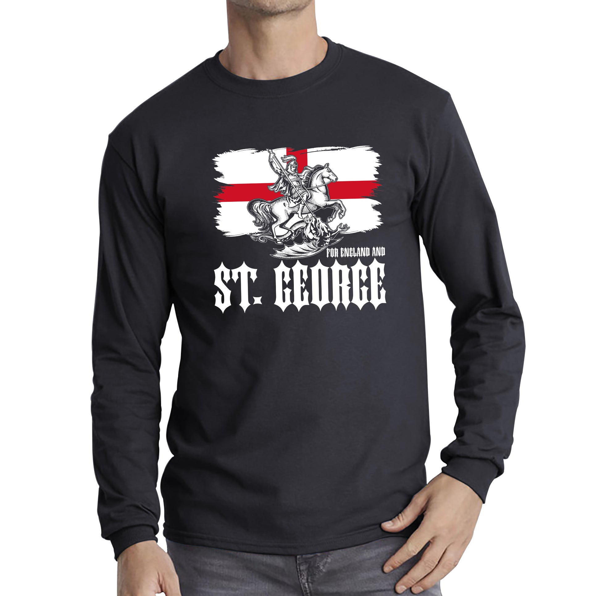 St George's Day Coat Of Arms Of Moscow Heraldic Horseman With A Spear In His Hand Slaying A Zilant Saint George And The Dragon England Flag Long Sleeve T Shirt