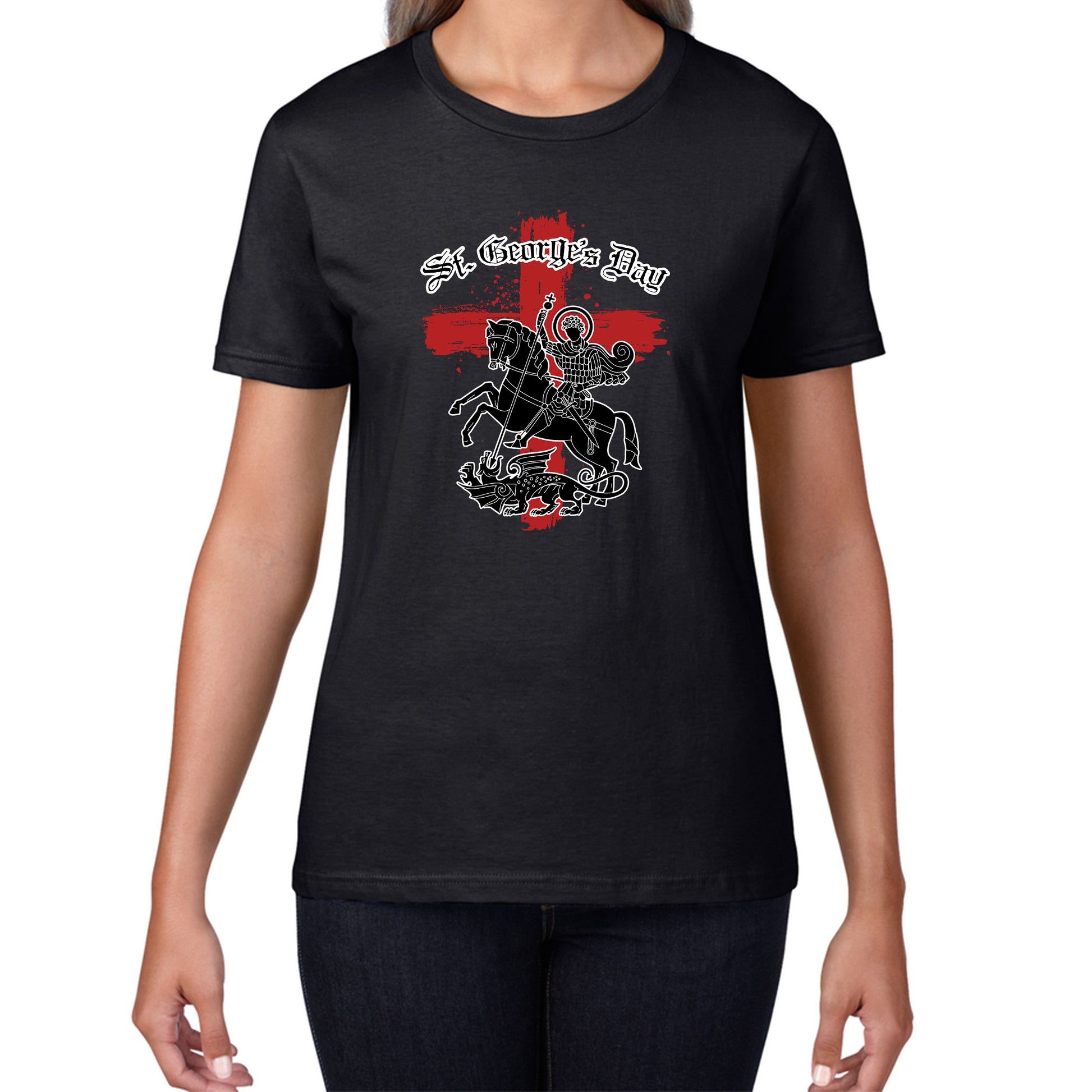 St George's Day Coat Of Arms Of Moscow Heraldic Horseman With A Spear In His Hand Slaying A Zilant Saint George And The Dragon England Flag Womens Tee Top