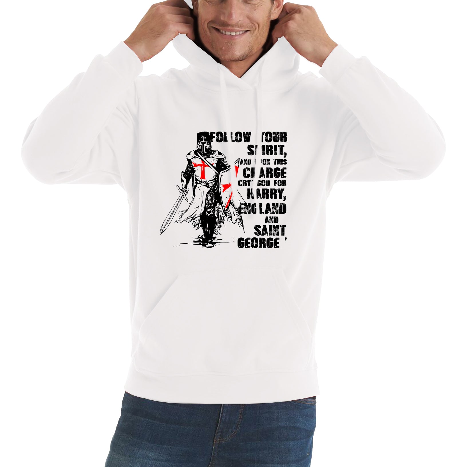 St George's Day Follow Your Spirit And Upon This Charge Cry God For Harry England And Saint George Knights Templar Warrior Fighter Patriotic Unisex Hoodie