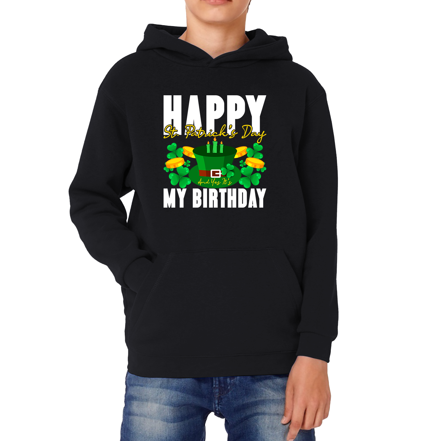 Happy St. Patrick's Day And Yes It's My Birthday Shamrock Birthday Lucky One Irish Festive Kids Hoodie