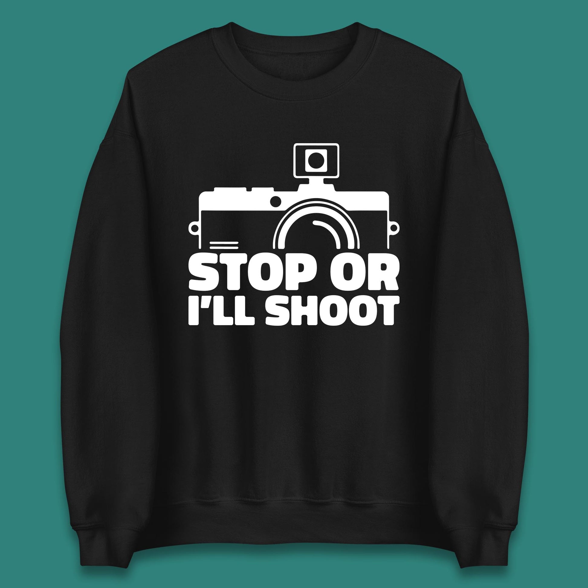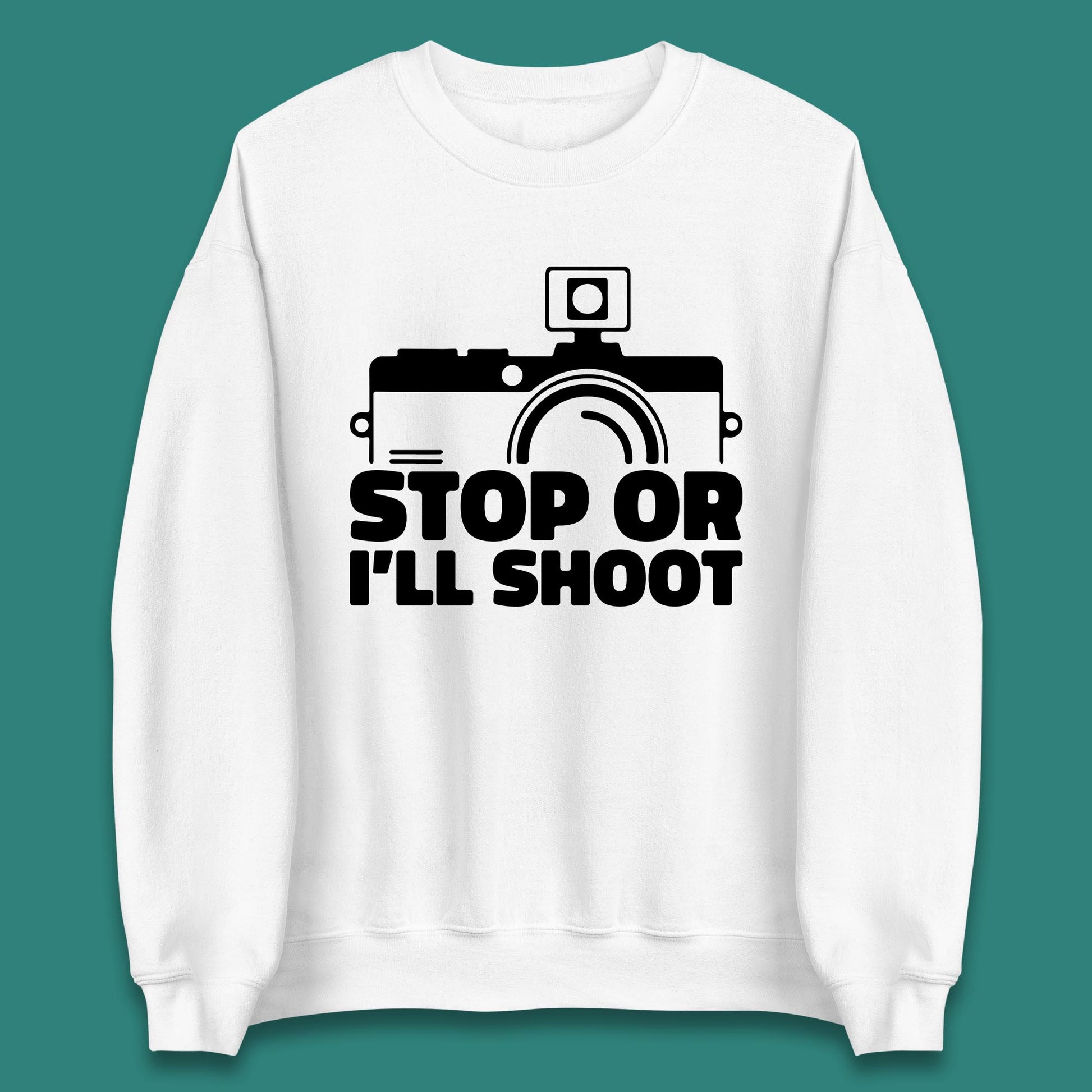 Stop Or I'll Shoot Camera Funny Photographer Photoholic Unisex Sweatshirt