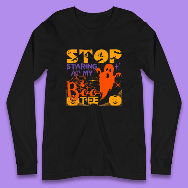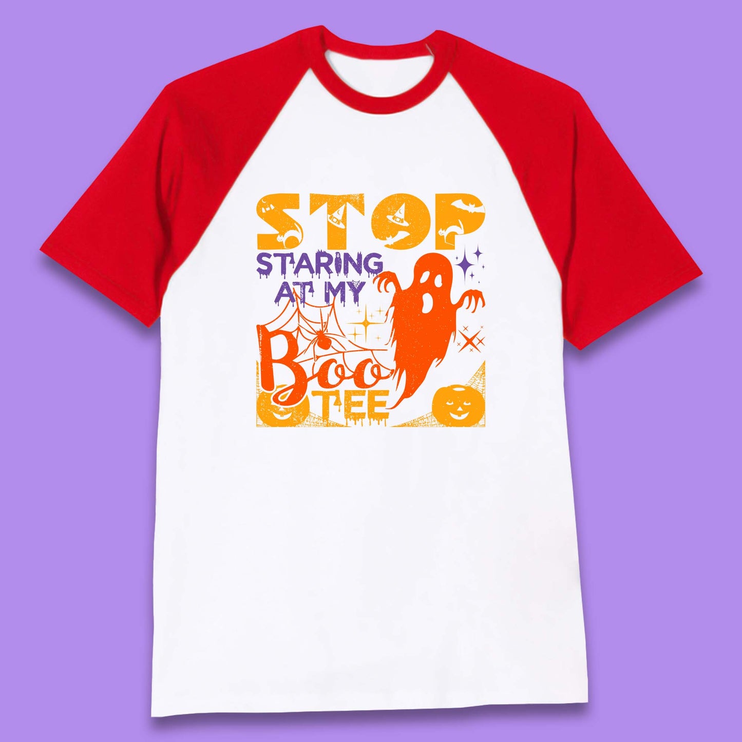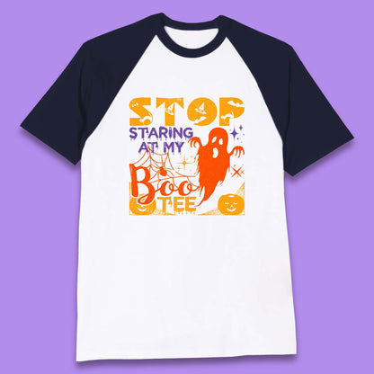 Stop Staring At My Boo Tee Funny Sayings Halloween Ghost Party Baseball T Shirt