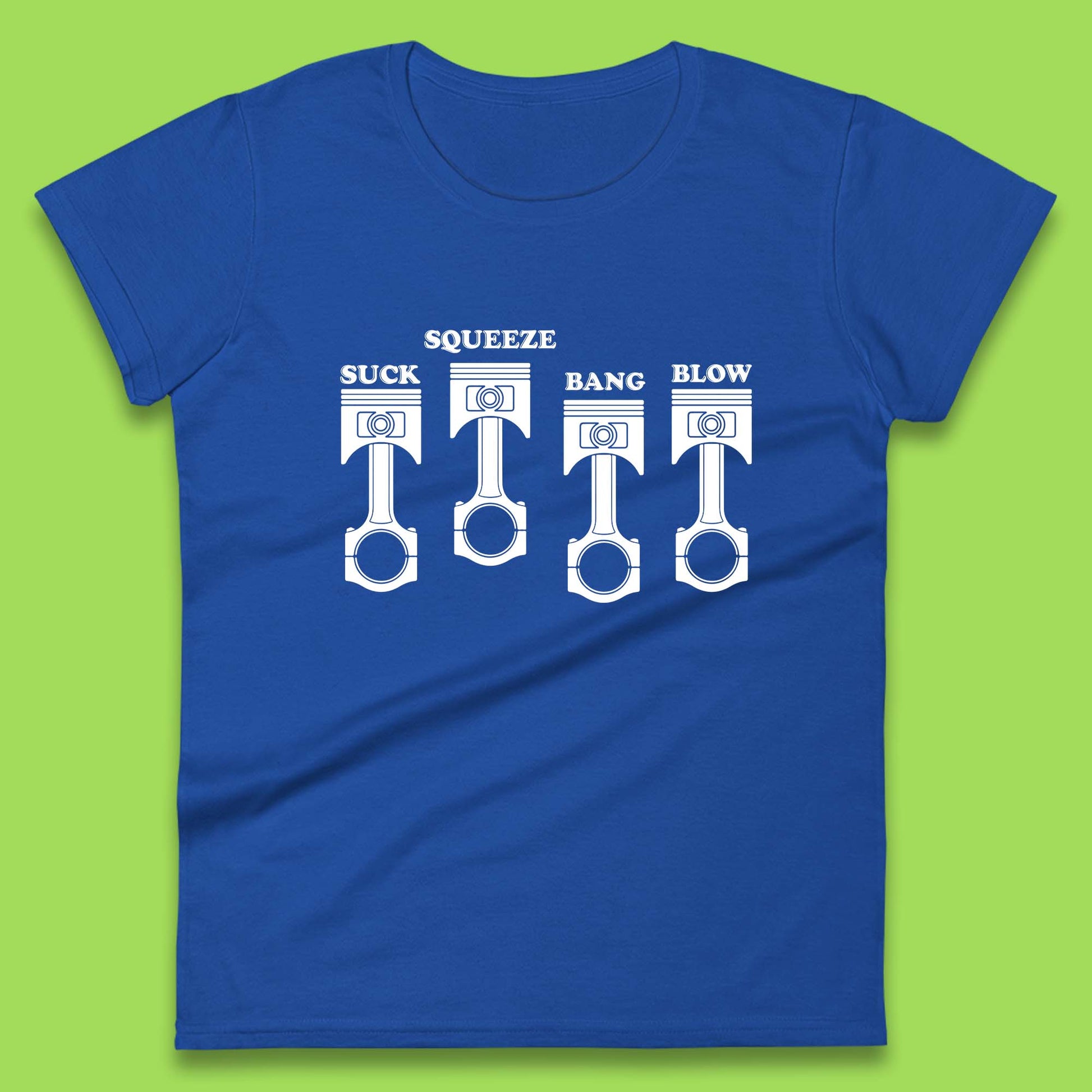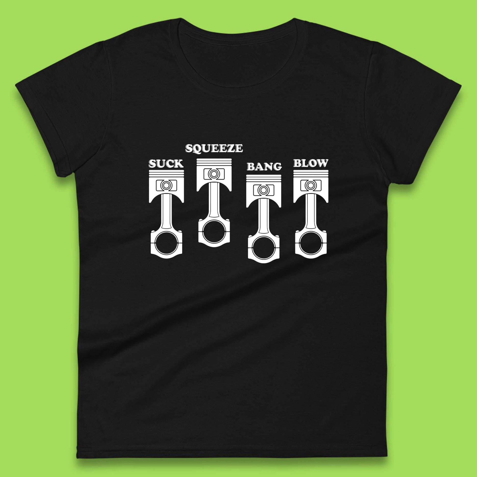 Suck Squeeze Band Blow Funny Car Lovers Joke Racers Riders Drifting Race Womens Tee Top